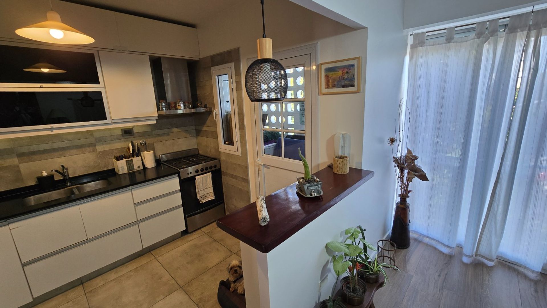 Al ingresar, el espacio se organiza con un living a la derecha y un comedor a la izquierda. La cocina semiintegrada se conecta al comedor y cuenta con salida al lavadero, donde se ubica el calefón. El conjunto dispone de cuatro dormitorios, todos con placard; el dormitorio principal es más amplio. Un baño completo con ducha y mesada de madera complementa la distribución. La doble orientación frente y contrafrente garantiza abundante luz natural durante todo el día.