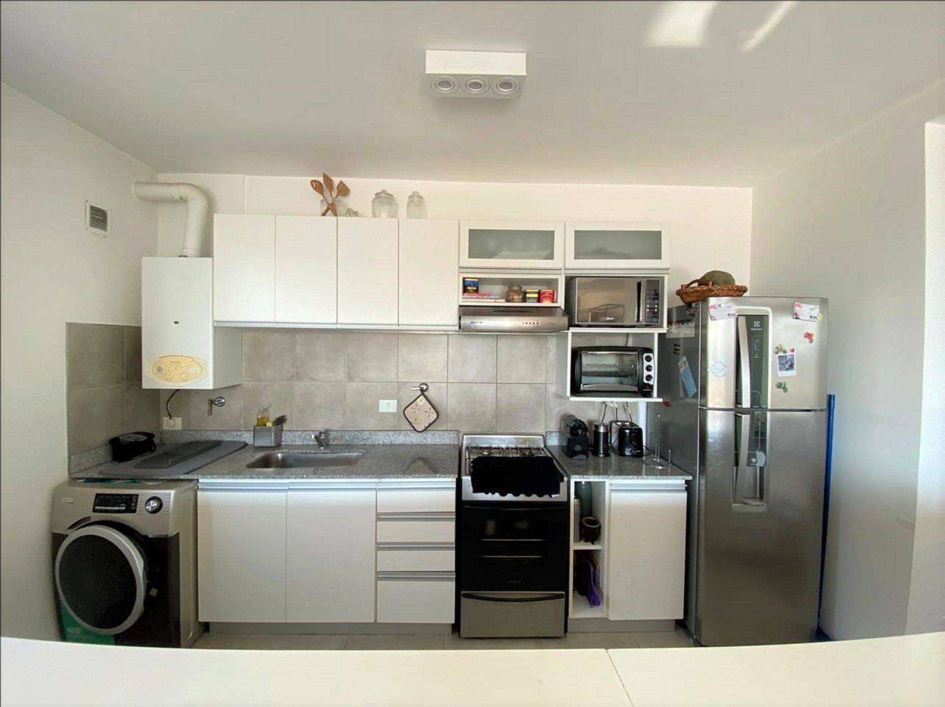 Se trata de un inmueble de tercer piso con 112 m² cubiertos y 34 m² descubiertos, que incluye una cochera cubierta. La distribución ha sido pensada para maximizar la funcionalidad: un amplio living comedor que se abre a una terraza de gran extensión, equipada con parrilla y suficiente espacio para crear un área de convivencia al aire libre. La cocina, integrada al salón, presenta un diseño moderno y práctico.