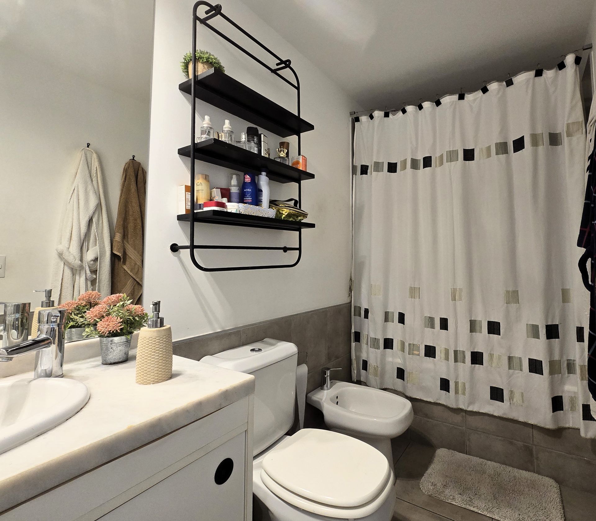 La propiedad cuenta con dos dormitorios en suite, cada uno con baño privado y placards, además de una tercera habitación que puede adaptarse como oficina o cuarto adicional. Un tercer baño completo con ducha completa el equipamiento.