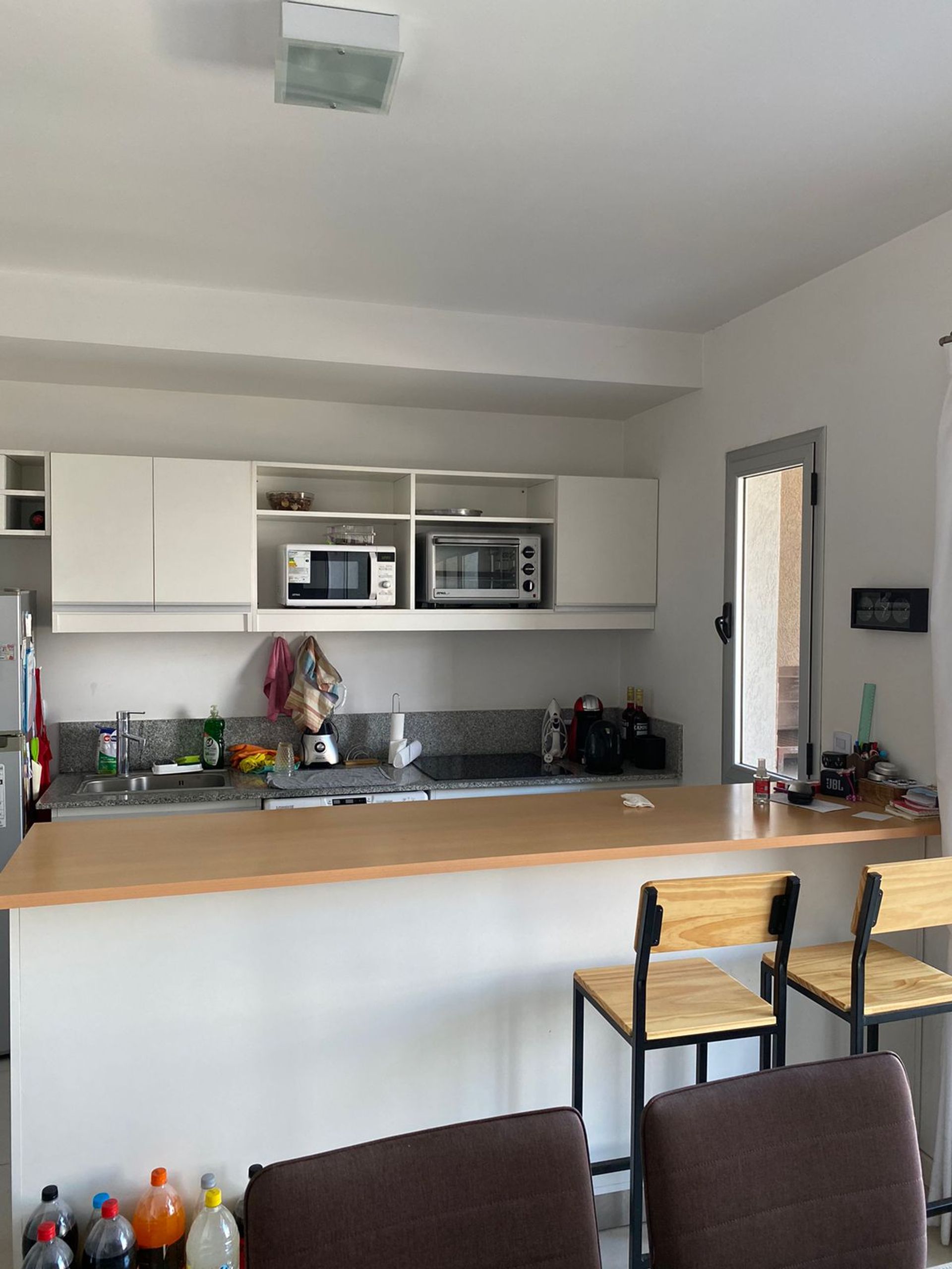 Departamento de 3 ambientes ubicado en Senderos Plaza, Nordelta, en el primer piso accesible por escalera. Su distribución optimiza cada espacio, ofreciendo una amplia zona de living y comedor que se integra con una cocina funcional y una barra desayunadora perfecta para reuniones informales.