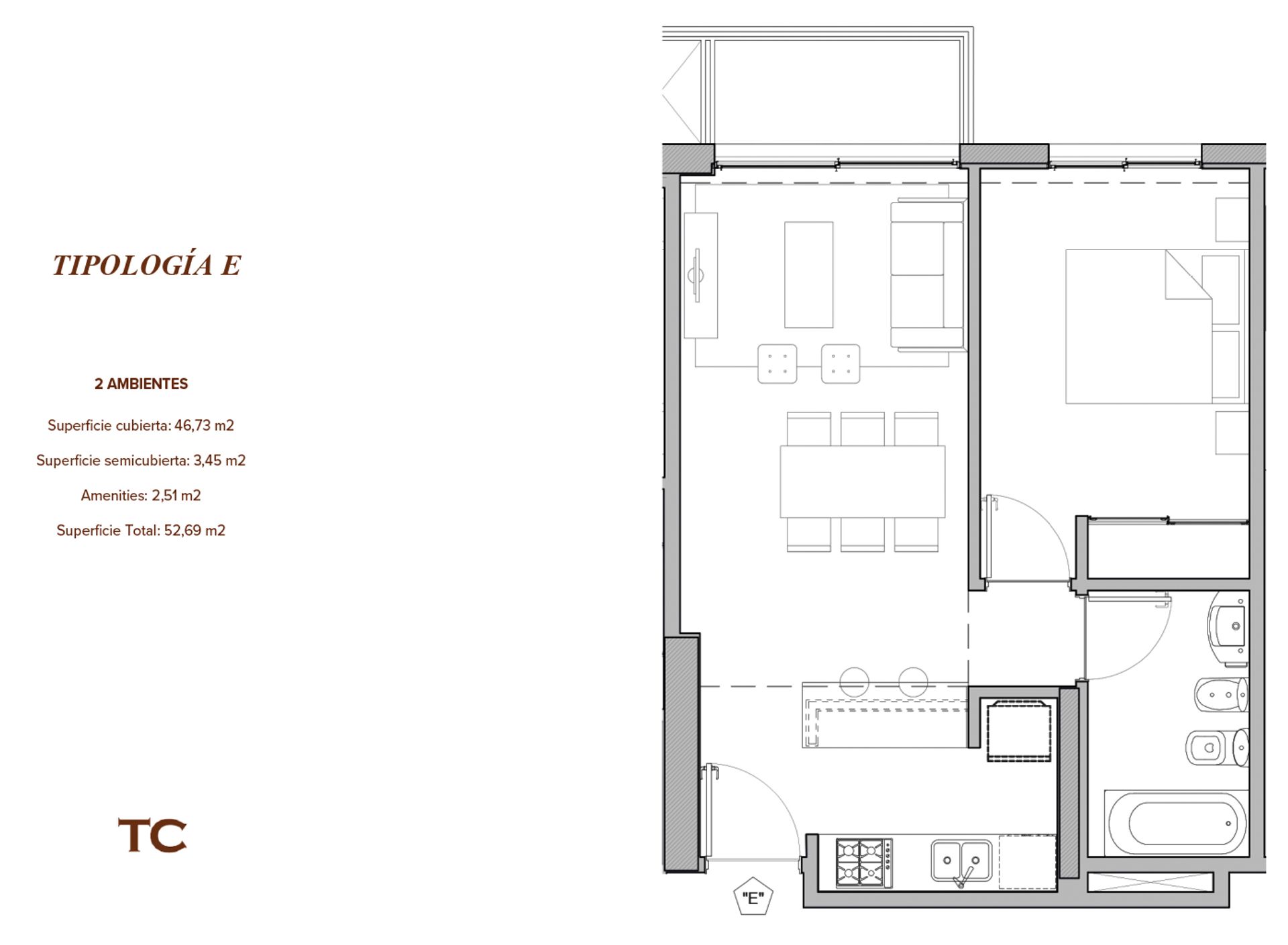 El interior cuenta con una cocina equipada con anafe y horno eléctrico, muebles bajo mesada y alacena, además de una preinstalación de aire acondicionado para un clima siempre agradable. El frente de placard, sin interior, maximiza el espacio y la funcionalidad. Un nalcón con baranda de aluminio y vidrio ofrece un detalle de elegancia y seguridad, mientras que la conexión para lavarropas facilita la vida diaria.