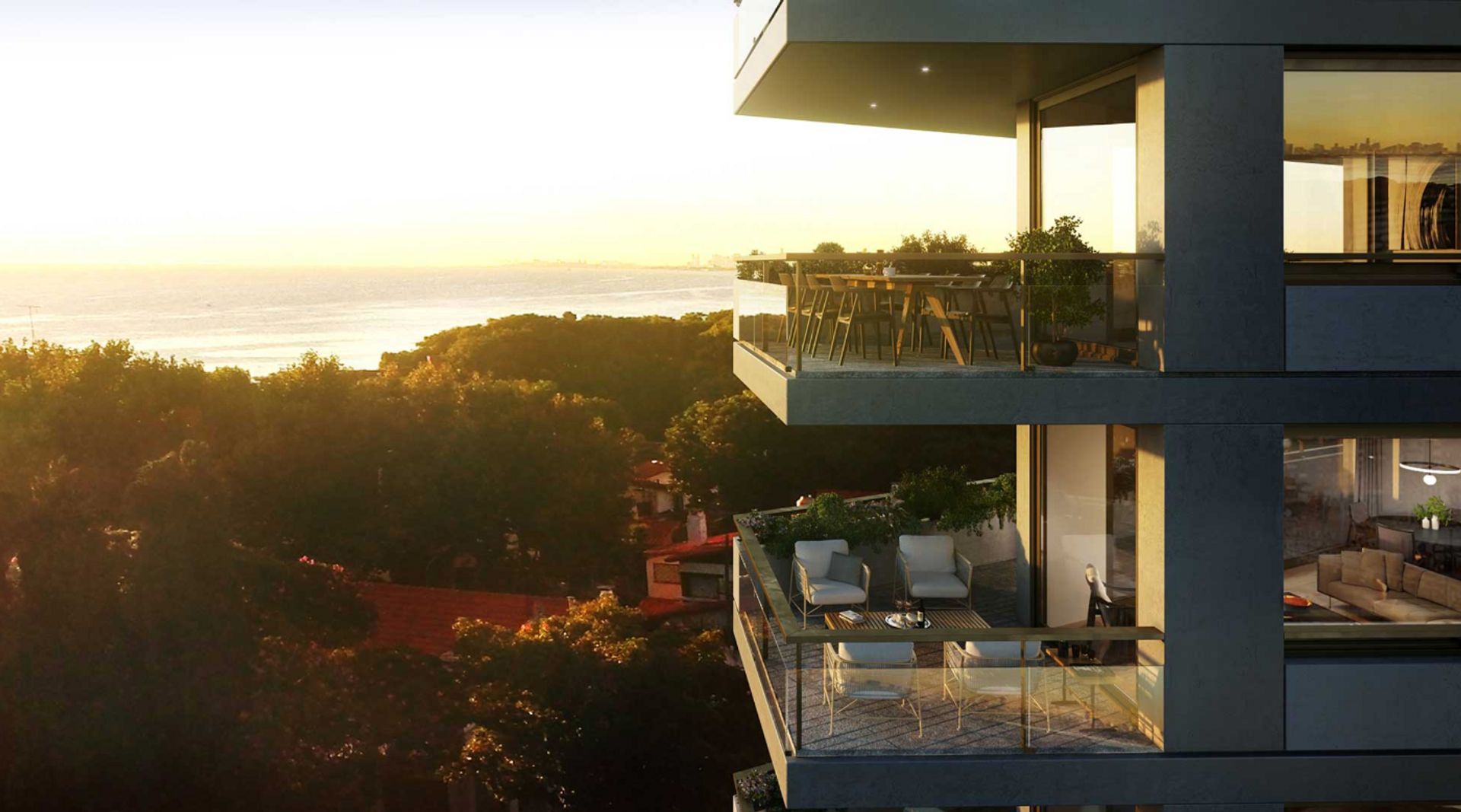 El living abre hacia un balcón aterrazado que ofrece una vista excepcional, ideal para disfrutar del entorno. La cocina integrada está totalmente equipada con mobiliario de alta calidad, mesada de silestone, horno eléctrico y anafe vitrocerámico, además de conexiones para lavarropas y/o lavavajillas.