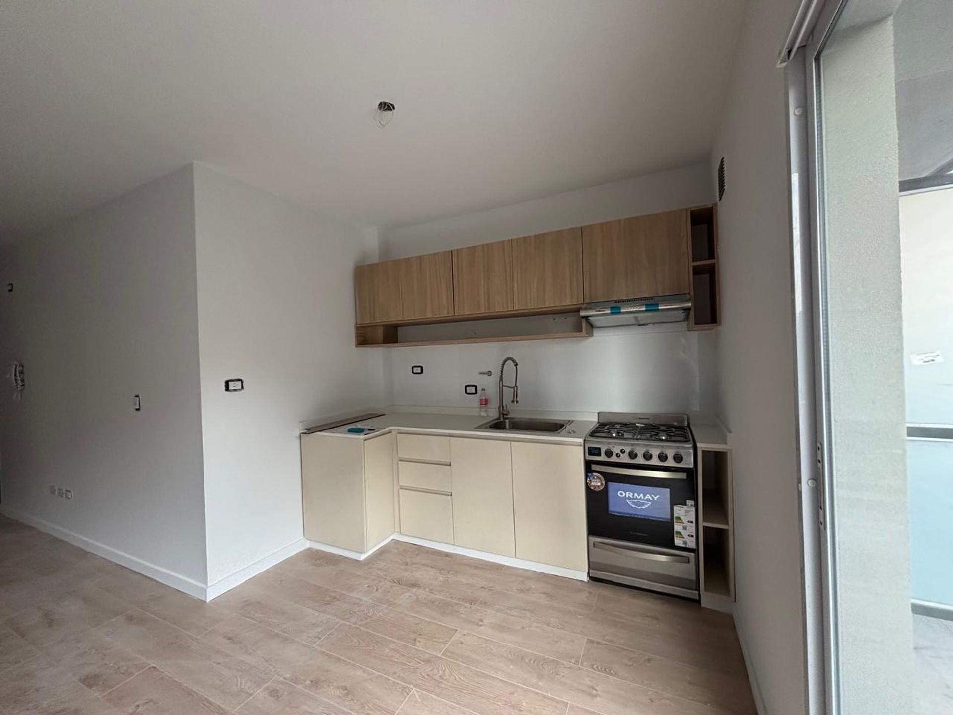 La cocina integrada presenta detalles de categoría: muebles bajo mesada con cuarzo Silestone, alacena de diseño contemporáneo, grifería monocomando y horno a gas con extractor, combinando funcionalidad y estética. El baño cuenta con ducha, extractor y terminaciones de alta calidad; los revestimientos en porcelanato y los artefactos de primera línea garantizan durabilidad y elegancia. Además, incluye un espacio destinado para lavarropa, ofreciendo la opción de no usar el laundry del edificio.