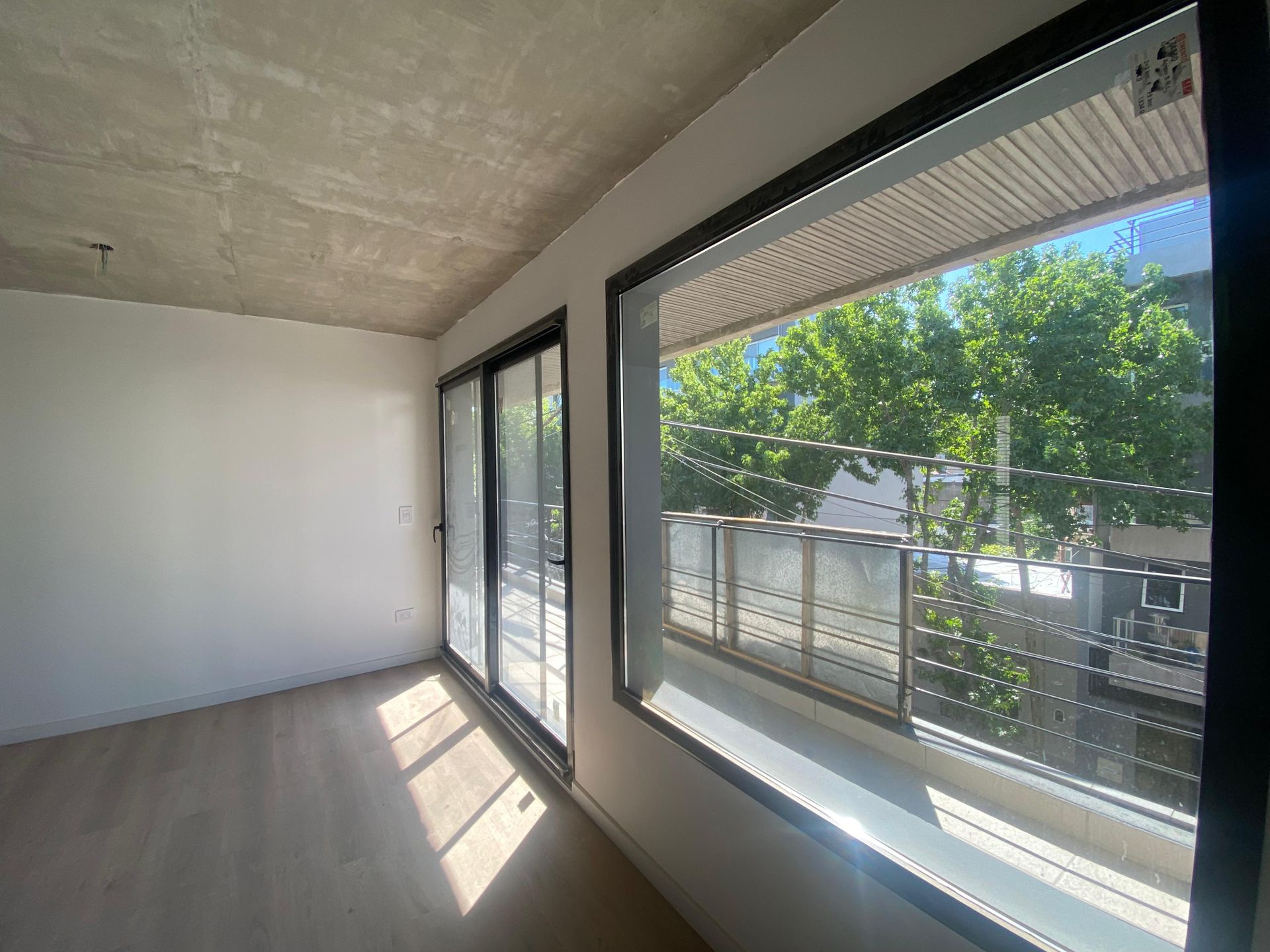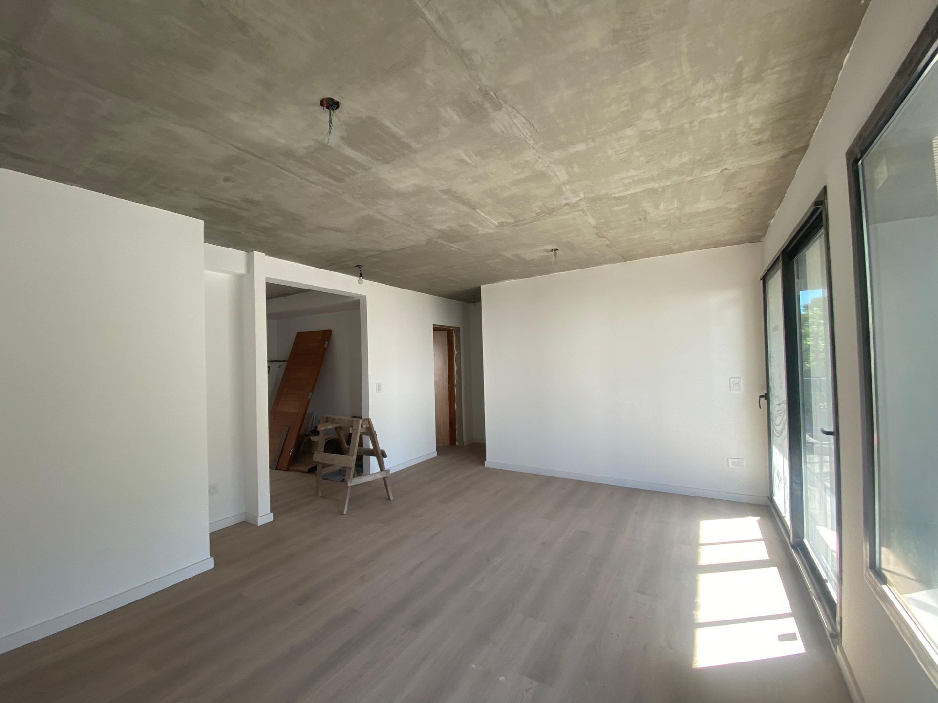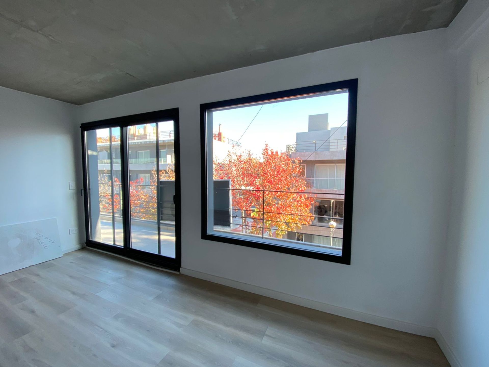El baño completo y el dormitorio con vestidor tipo walking closet completan la propuesta, ofreciendo comodidad y funcionalidad. El edificio no cuenta con gas; la calefacción se gestiona mediante aire acondicionado. Todas las puertas corredizas son línea A30 negras con DVH, las ventanas de menor tamaño línea Modena negra con DVH, y las puertas de ingreso a las unidades son de cedro macizo de 2,50 m. Las puertas interiores están enchapadas en madera natural, mientras que los porchelanatos en los baños son de ilva 1,20 x 0,60 m. Las losas de baño utilizan la marca Ferrum y las griferías la marca Peirano; la bacha de cocina es Johnson. Se ha instalado preinstalación con cañería de cobre preparada para dos aires, y el piso interior es de PVC de alto tránsito, símil madera de 7 mm de espesor.