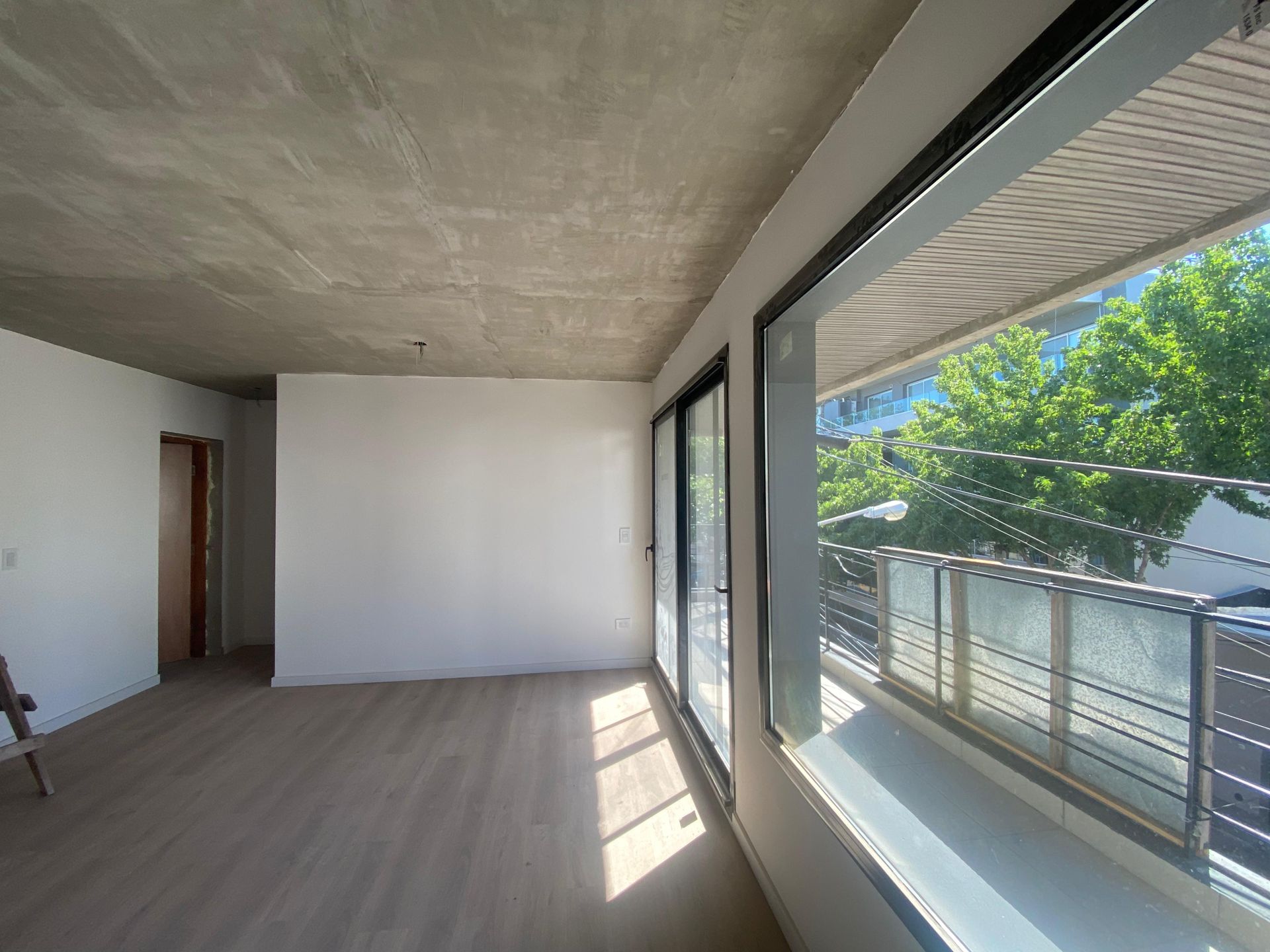 El departamento de 50 m² cubiertos, con 10 m² de balcón, presenta una distribución abierta y luminosa. La terraza apaisada, que se extiende desde el dormitorio hasta el living comedor, amplifica el espacio interior y exterior, brindando una entrada abundante de luz y ventilación. La cocina abierta, con terminaciones elegantes, se integra sin fisuras al área de living, creando un ambiente armonioso y acogedor. Desde el balcón se disfruta de una vista agradable y se dispone de un amplio espacio al aire libre para momentos de relajación.