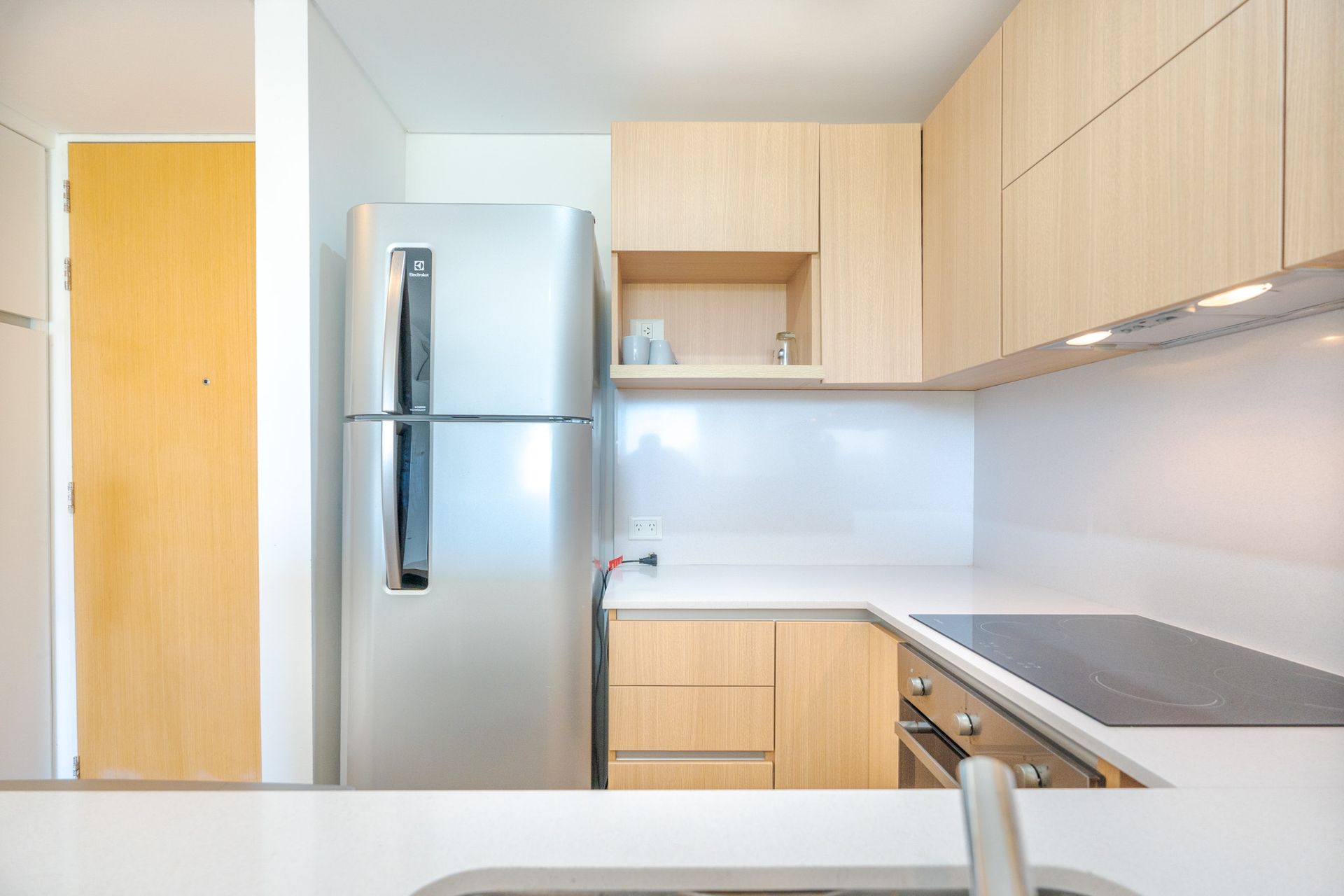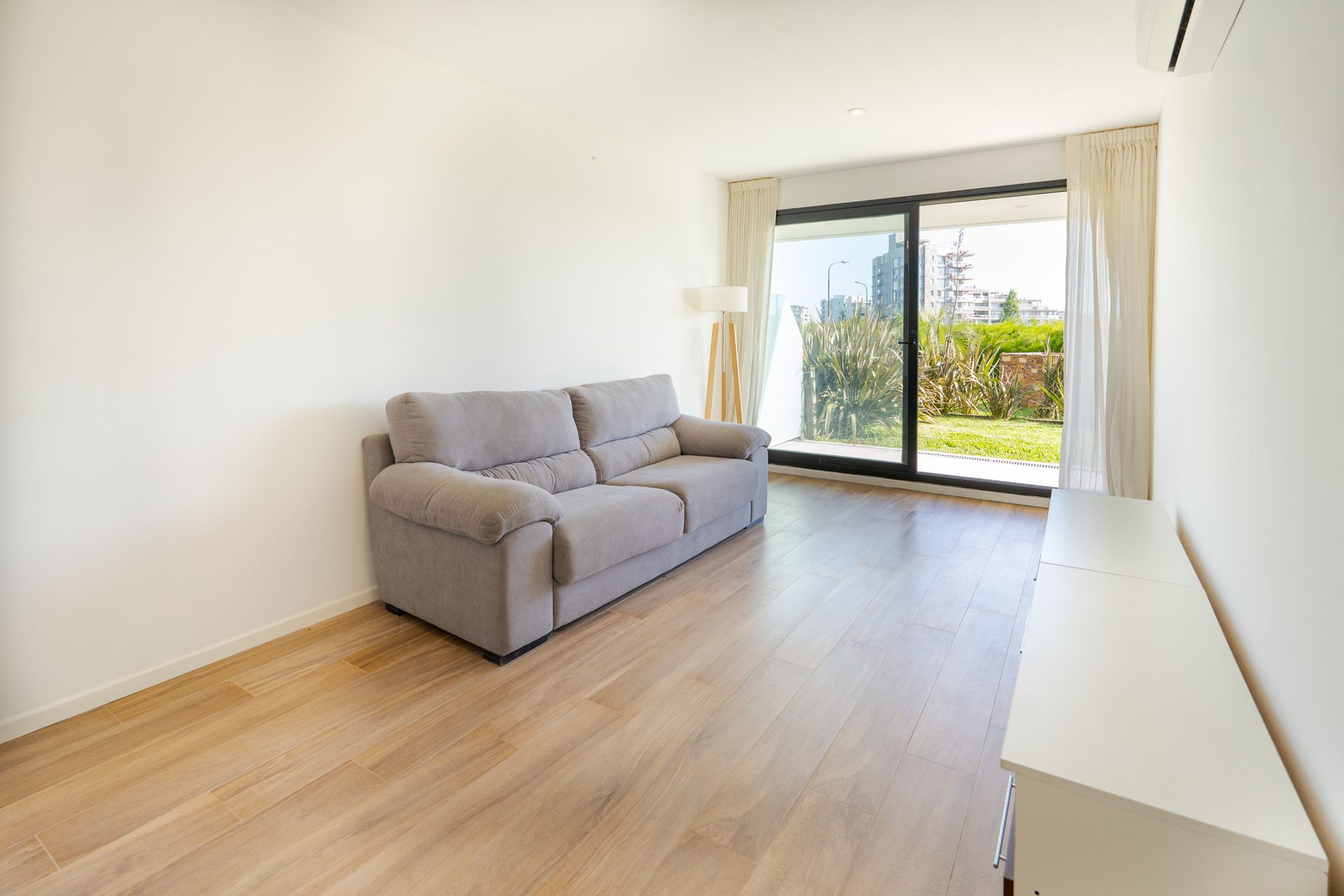 La unidad cuenta con una cocina totalmente equipada, un toilette de recepción, un baño completo y un dormitorio con vestidor amplio. Los ambientes están equipados con cortinas y aire acondicionado para mayor confort. Además, dispone de cochera propia y una baulera con gran capacidad de almacenamiento en el subsuelo.