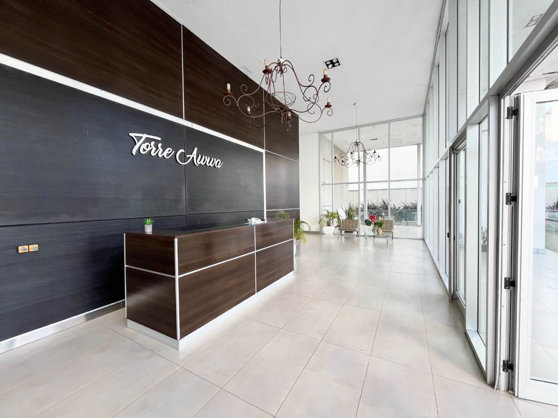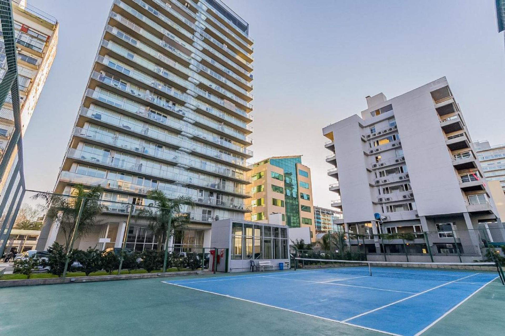 El edificio ofrece una gama de amenidades de alto nivel: piscina cubierta climatizada con vestuario, piscina descubierta en el piso 19 con vistas al río, terraza con parrilla y mesas para reuniones, cancha de tenis, gimnasio, área para niños, lavandería y espacio para bicicletas. La seguridad se mantiene las 24 horas mediante garita y circuito cerrado de televisión.