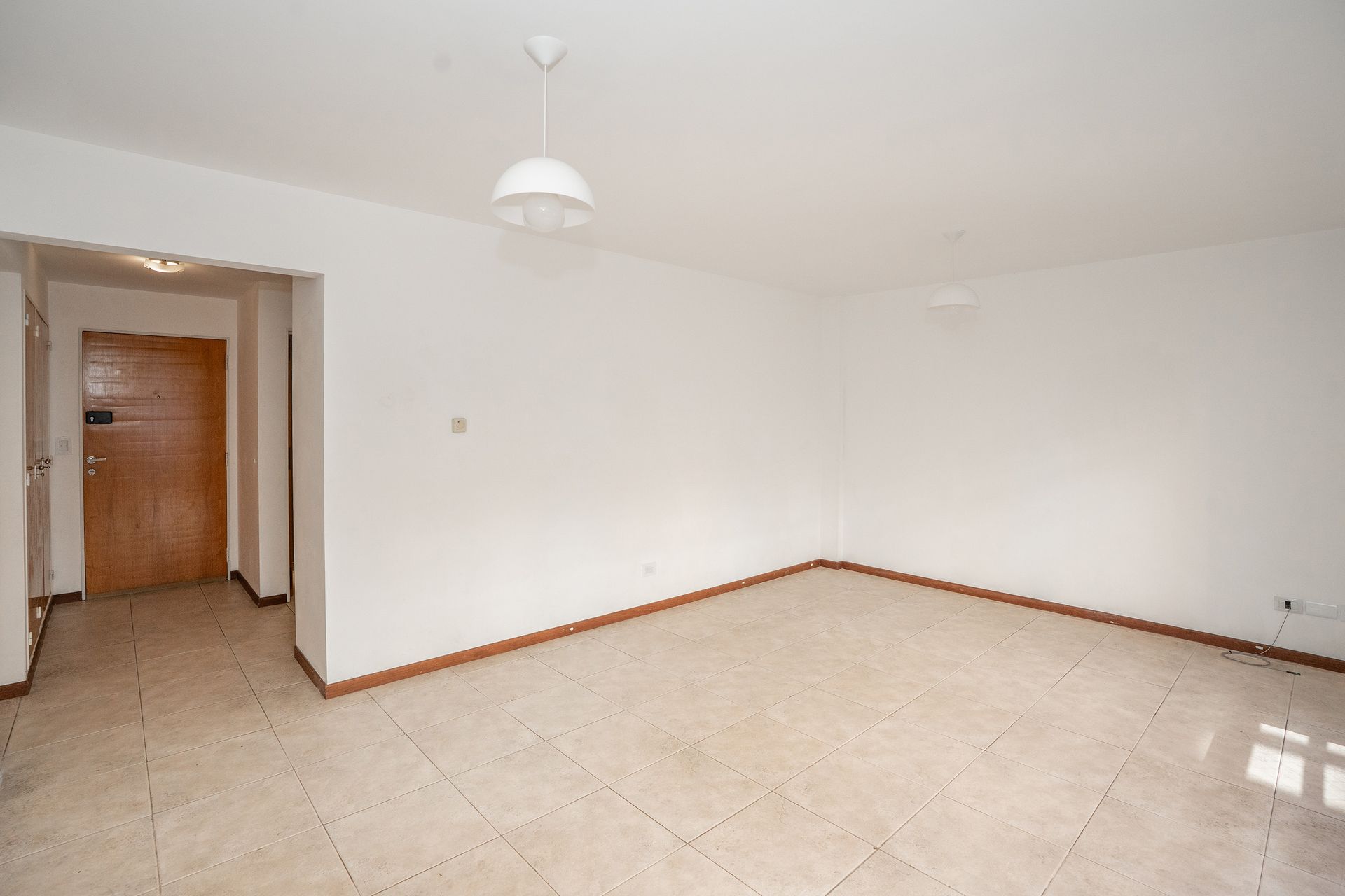 Al entrar se revela un hall de recepción amplio con placard, que conduce a un luminoso living y comedor de 6,00 × 4,00 m, abierto a un balcón corrido.