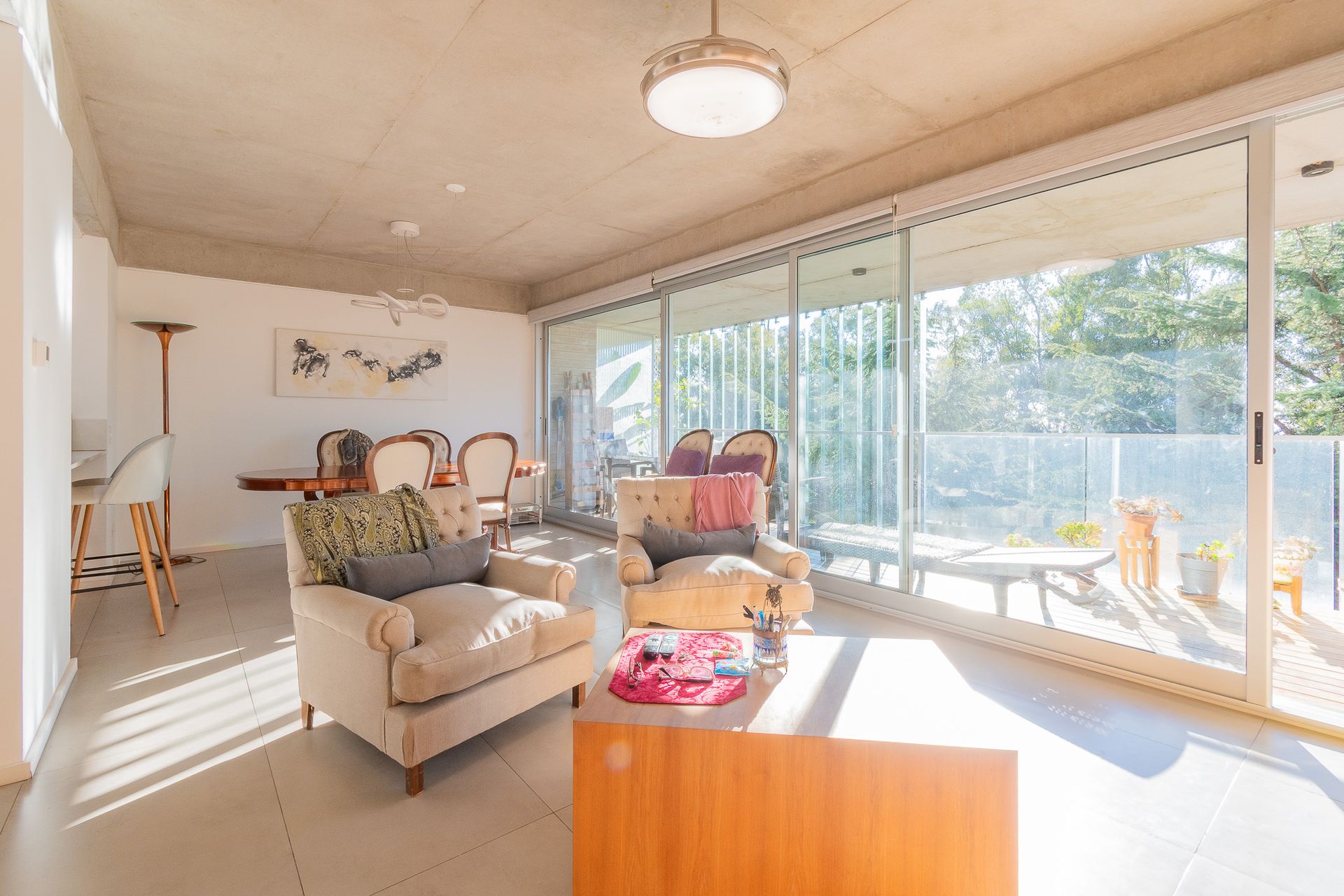 La vivienda incorpora hormigón a la vista, lo que aporta un toque de modernidad y robustez. El sistema de losa radiante individual permite controlar la temperatura en cada ambiente, complementado con aire acondicionado tipo split. Las expensas de 497.000 incluyen agua caliente central y la losa radiante, garantizando comodidad y eficiencia energética.