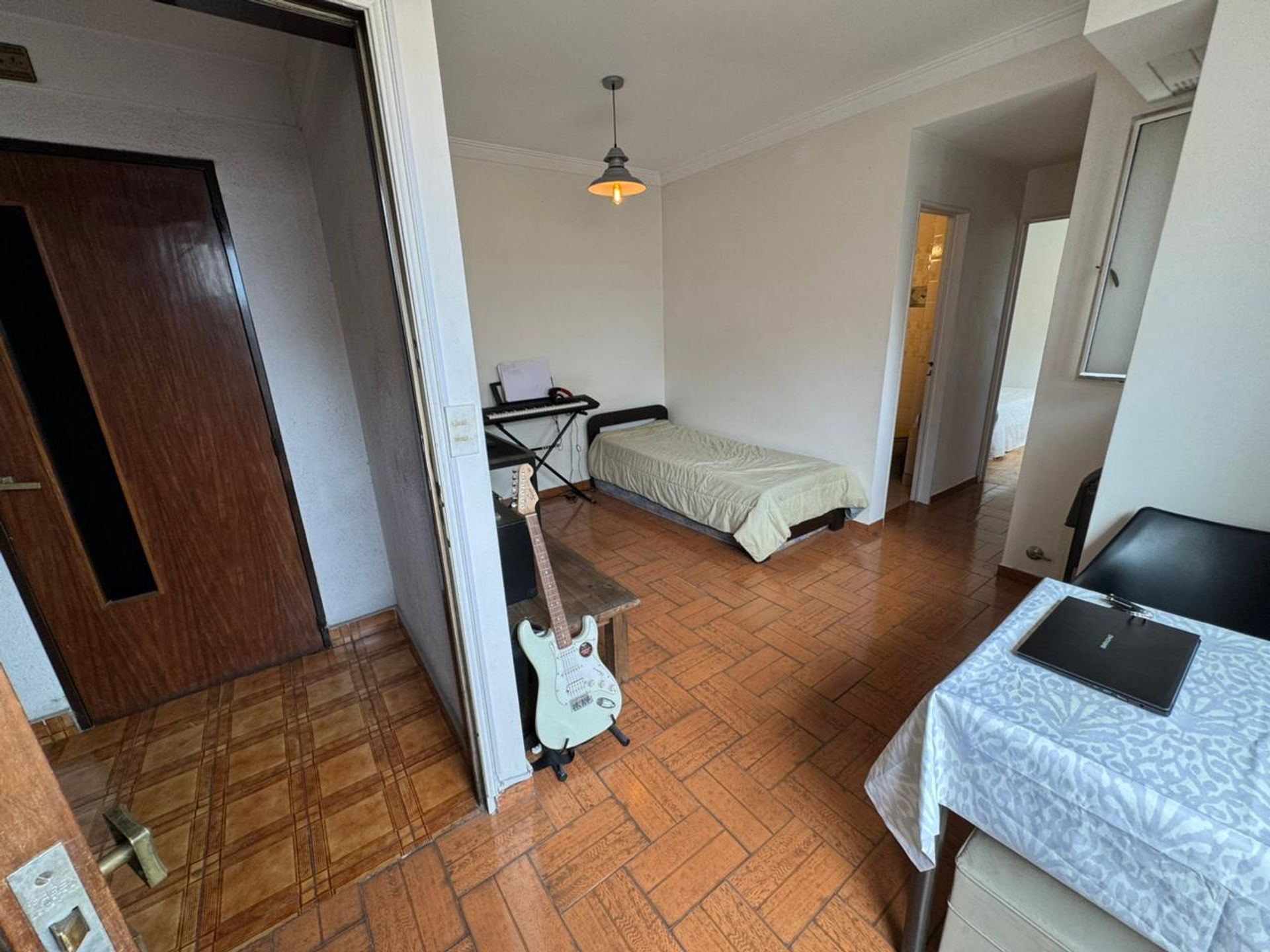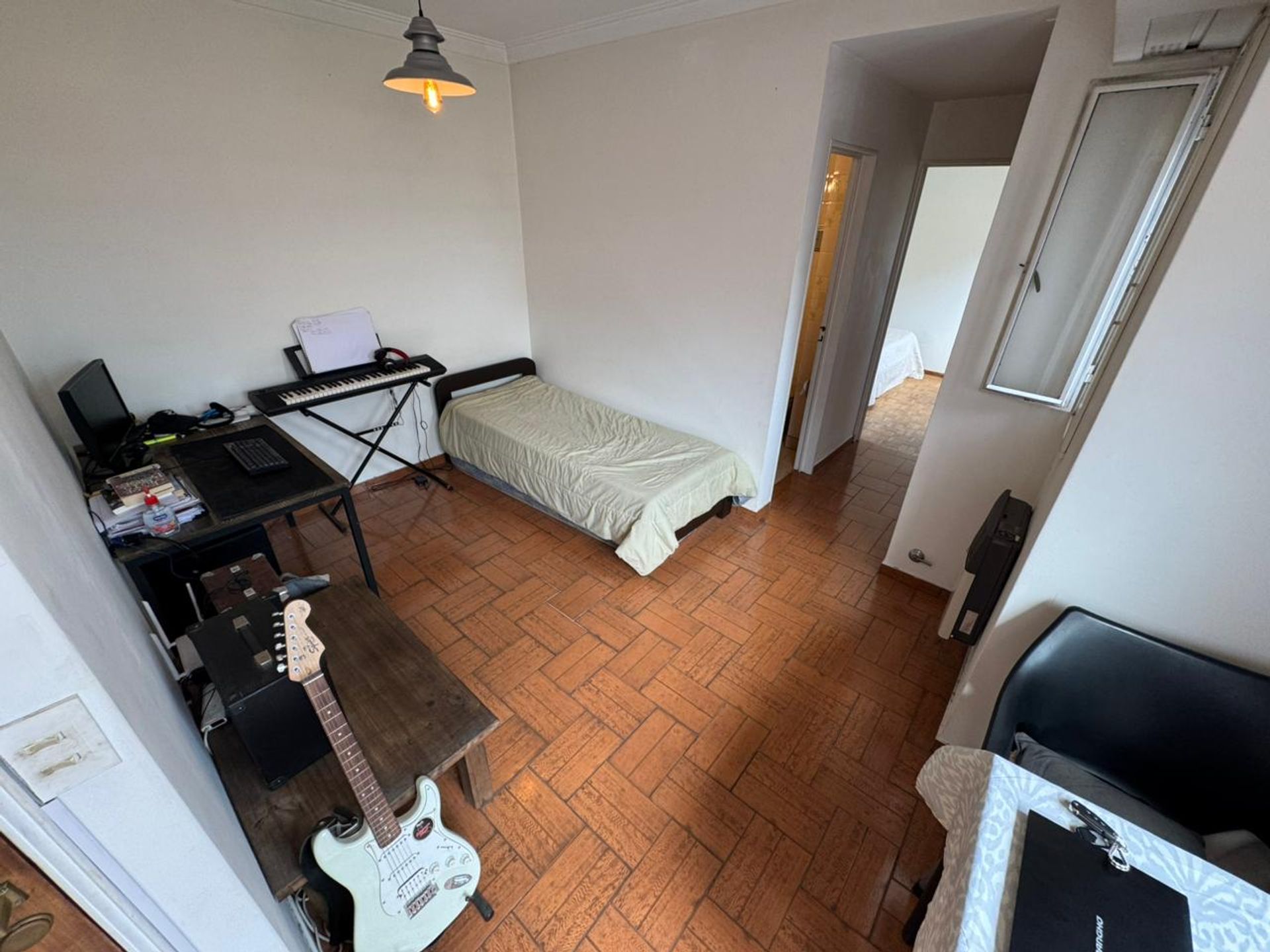En el piso 12 se descubre un espacioso living-comedor que se abre a una cocina funcional. El dormitorio principal cuenta con amplio espacio y una ventana que permite la entrada de luz natural. El baño completo está diseñado con acabados modernos y cuenta con una ducha de gran tamaño. En el exterior, un balcón tipo terraza ofrece un área amplia donde se integra un lavadero techado, ideal para la gestión de la ropa y el mantenimiento del hogar.