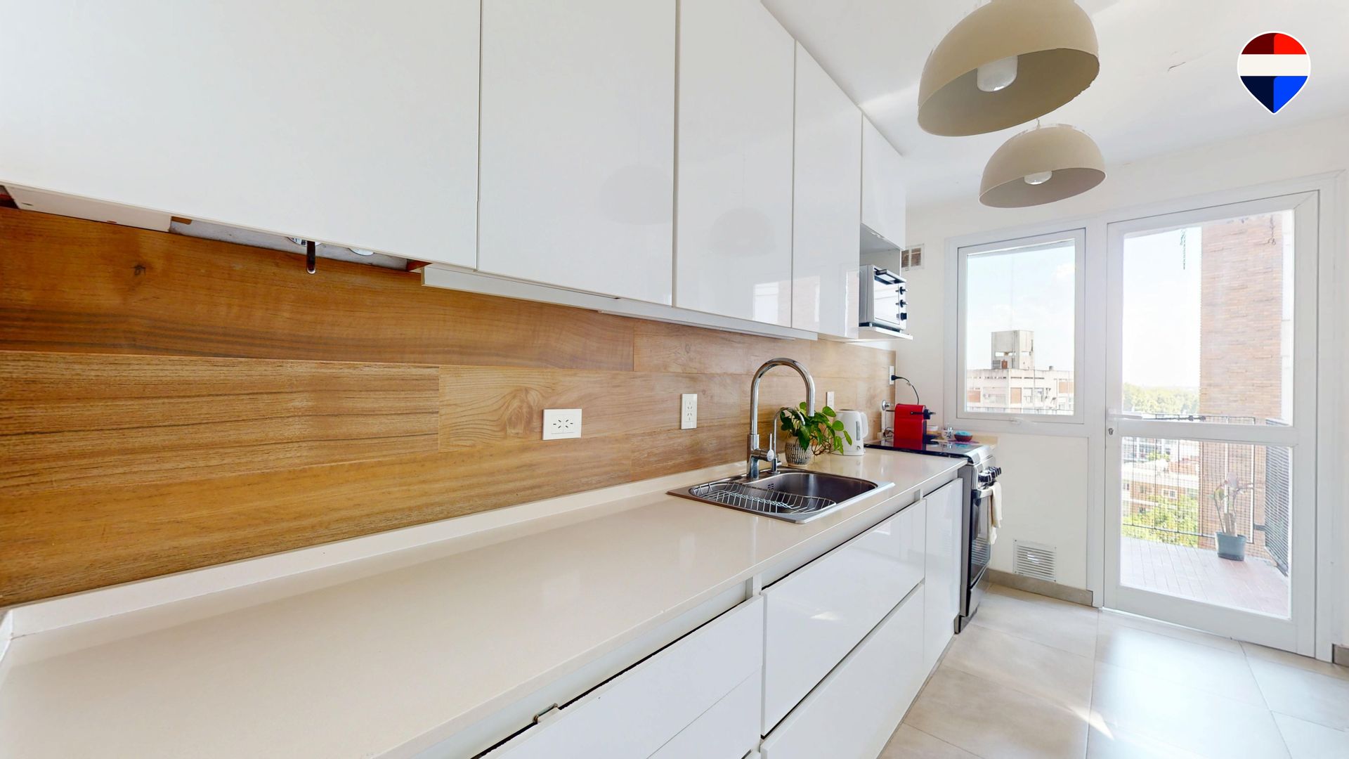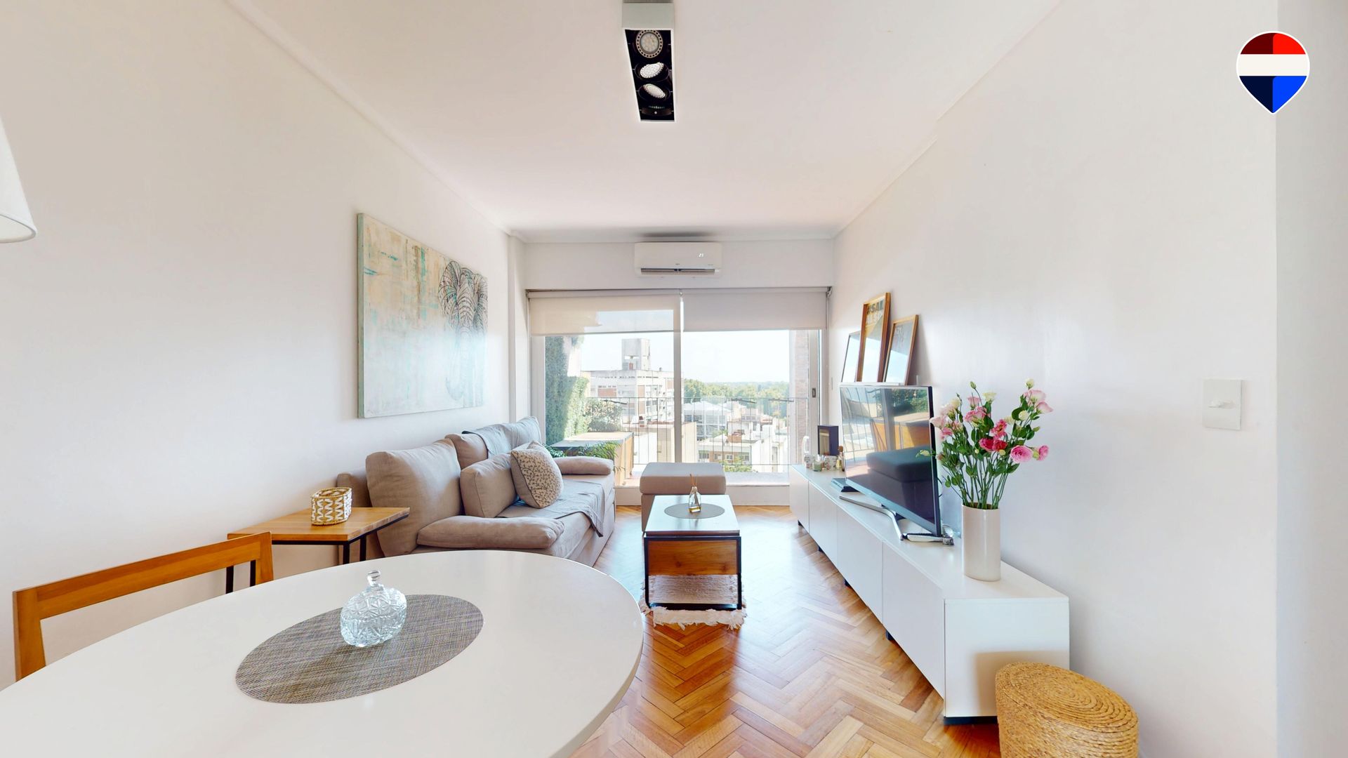 Departamento de 2 ambientes y 1 dormitorio ubicado en el piso 8 de un edificio en Acassuso, San Isidro. El inmueble está totalmente refaccionado y cuenta con un amplio living comedor que se abre a un balcón de generosas dimensiones, ideal para disfrutar del aire libre. La cocina dispone de muebles altos y bajos con mesada, un sector destinado a heladera, conexión para lavarropas y acceso directo al balcón, lo que aporta ventilación y luz natural. El dormitorio es amplio y luminoso, con un placard empotrado de piso a techo que ofrece gran capacidad de guardado. El baño completo incluye mampara de vidrio.