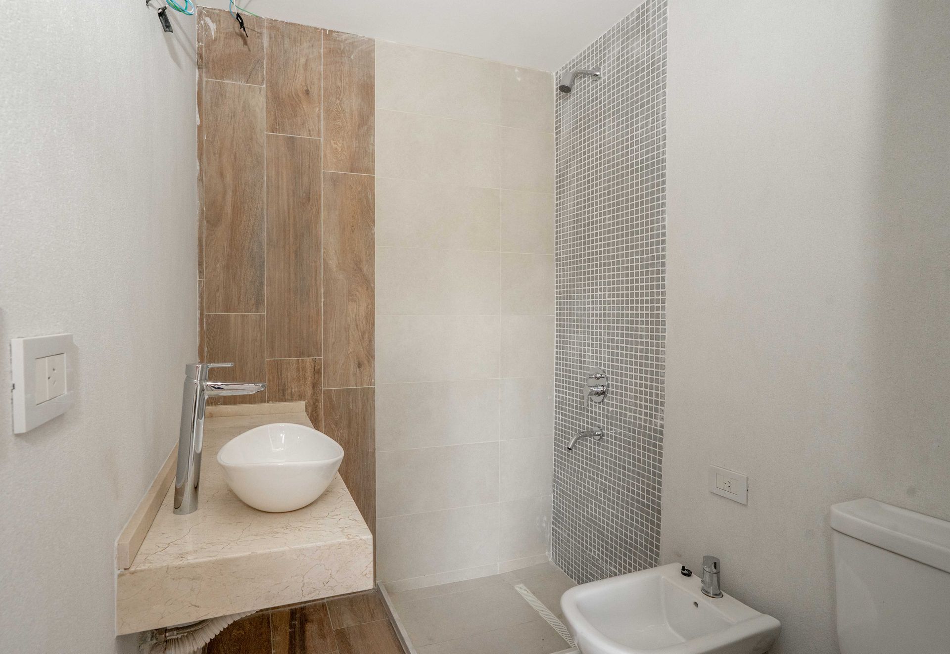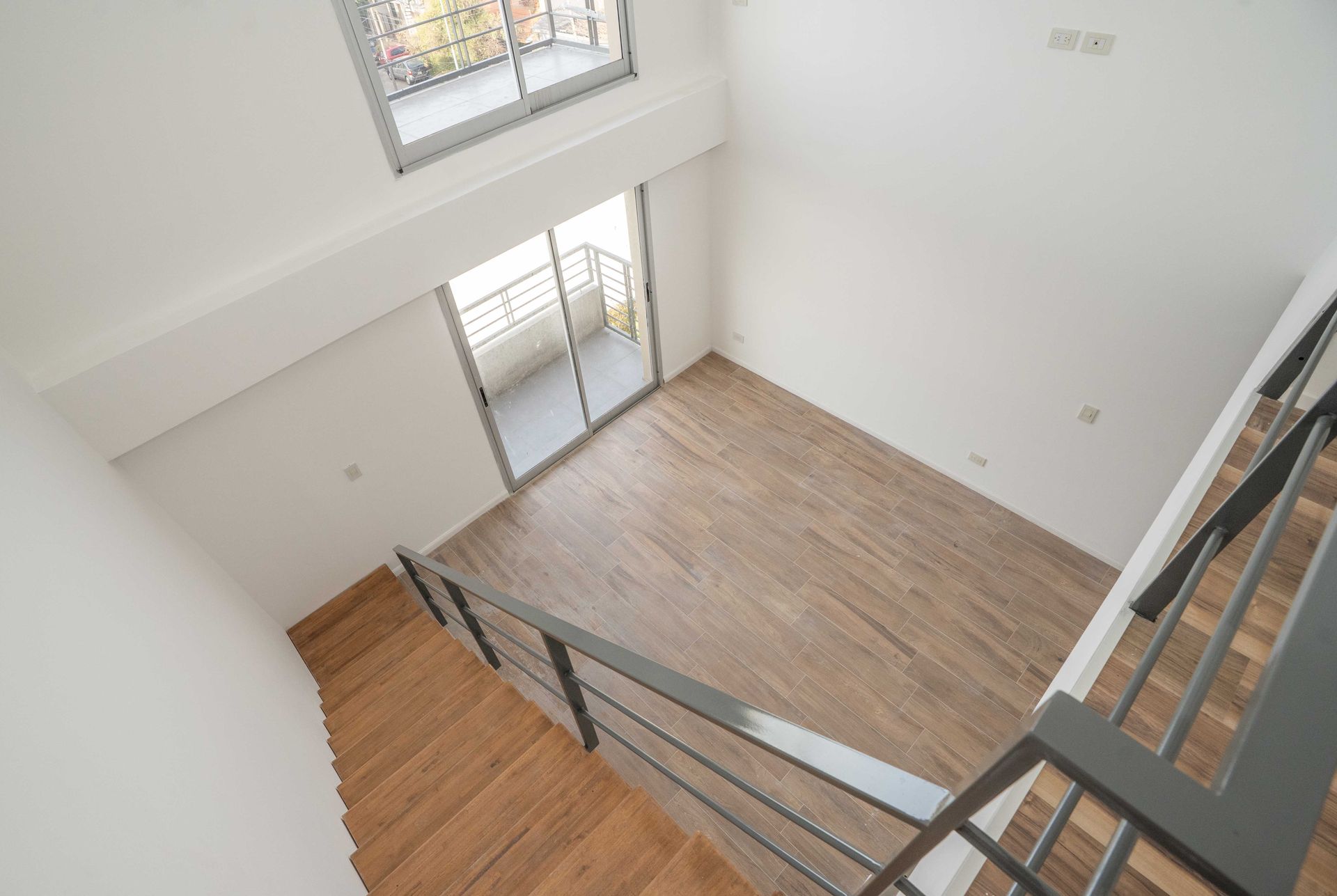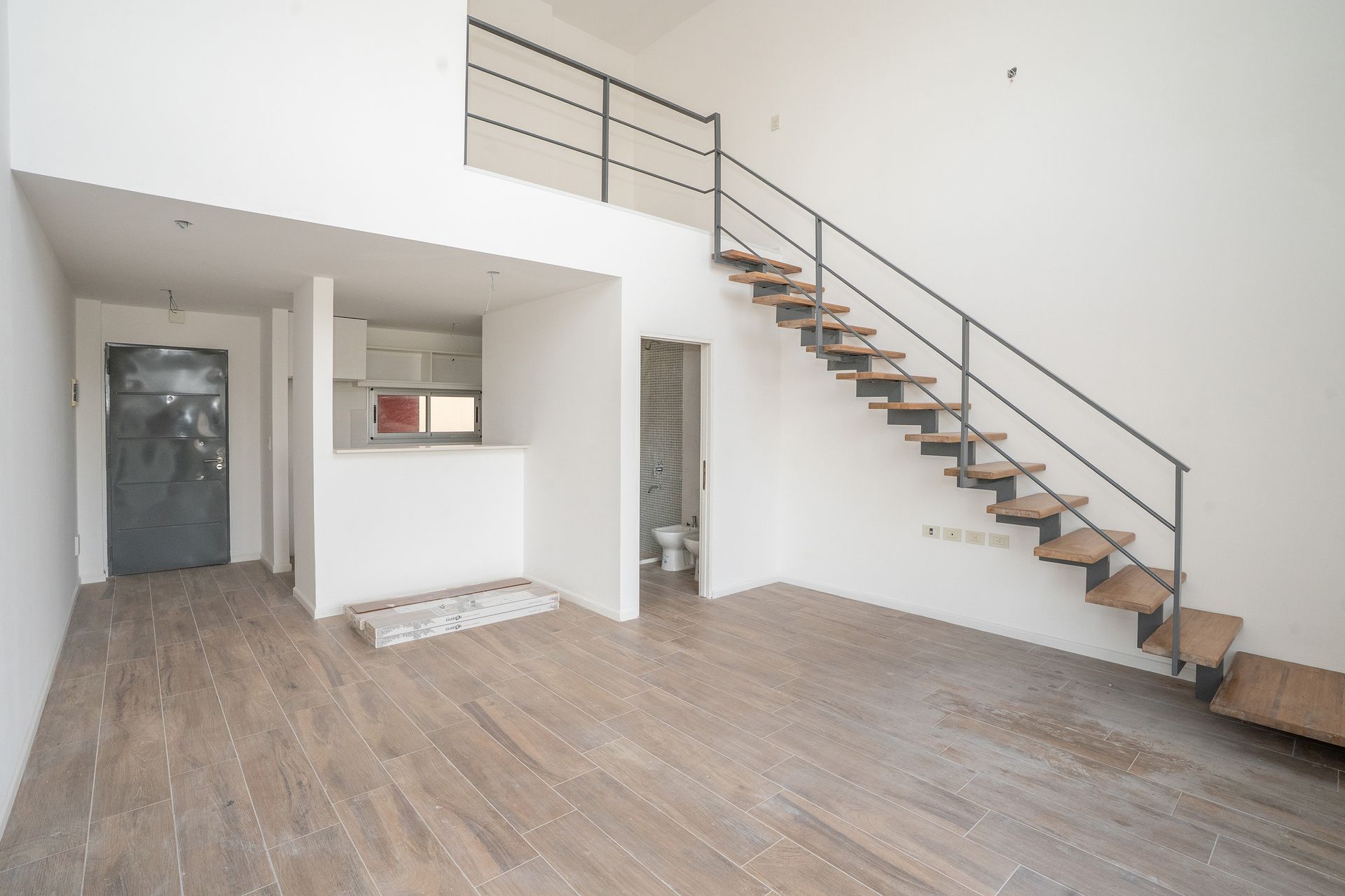 Ubicado en el tercer piso de un moderno edificio de tres plantas, este departamento de 2 ambientes ofrece un espacio de 66,43 m² construidos, con la posibilidad de ampliarse hasta 83,24 m², aprovechando la zona ampliable de 16,81 m² en la planta alta. La distribución en dúplex crea una sensación de amplitud y luminosidad, con un amplio living comedor en la planta baja que se integra con una cocina semi‑integrada, y un práctico toilette con ducha. En la planta alta se ubica la habitación principal, acompañada de un baño completo, garantizando un refugio privado y cómodo.