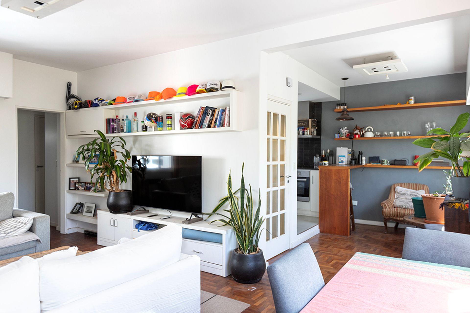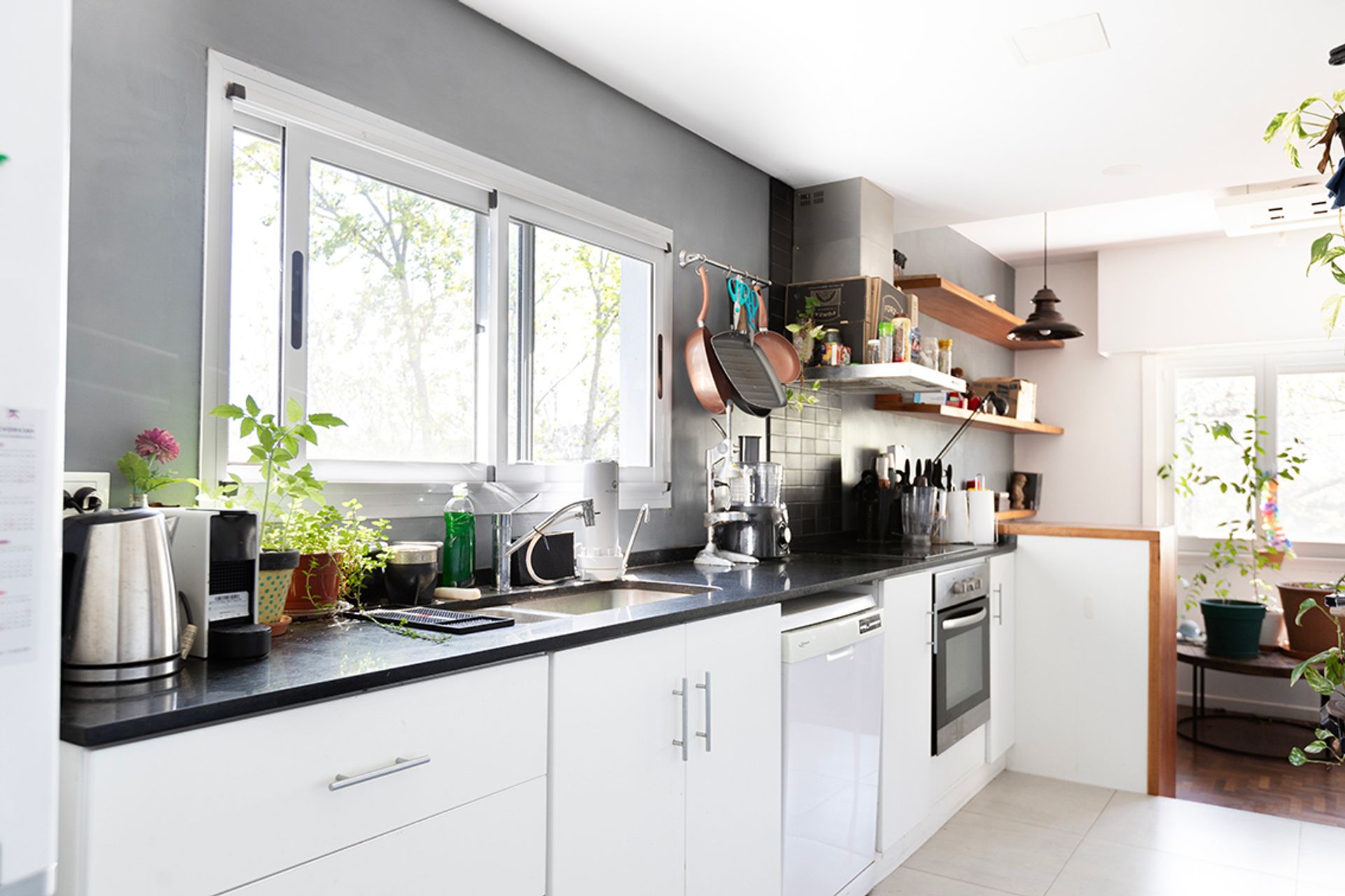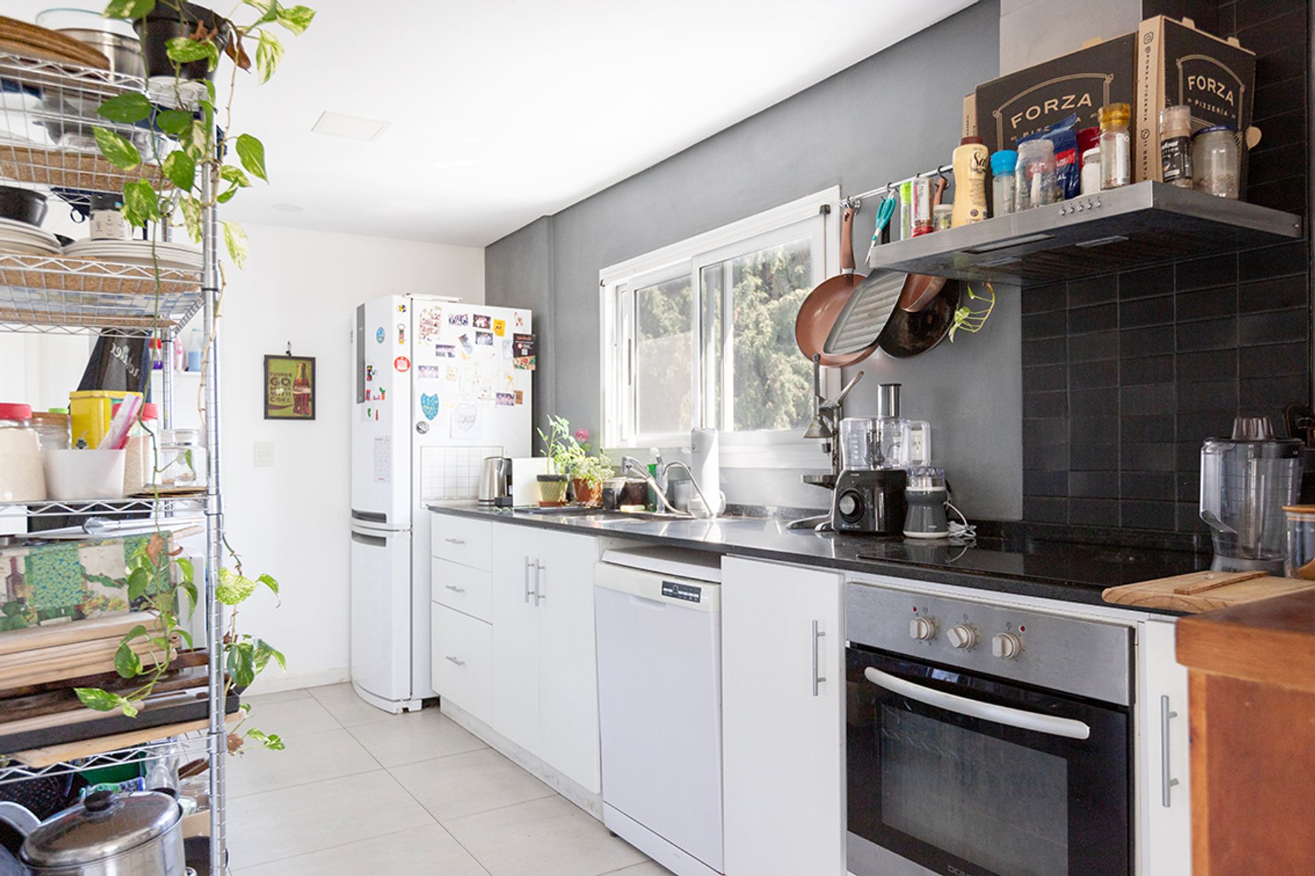 El salón y comedor se abren a un balcón, ideal para disfrutar de momentos de relax. La cocina, funcional y moderna, cuenta con barra desayunadora, muebles a medida bajo la mesada, campana extractora y un espacio pensado para la lavavajillas. Un lavadero separado añade practicidad.