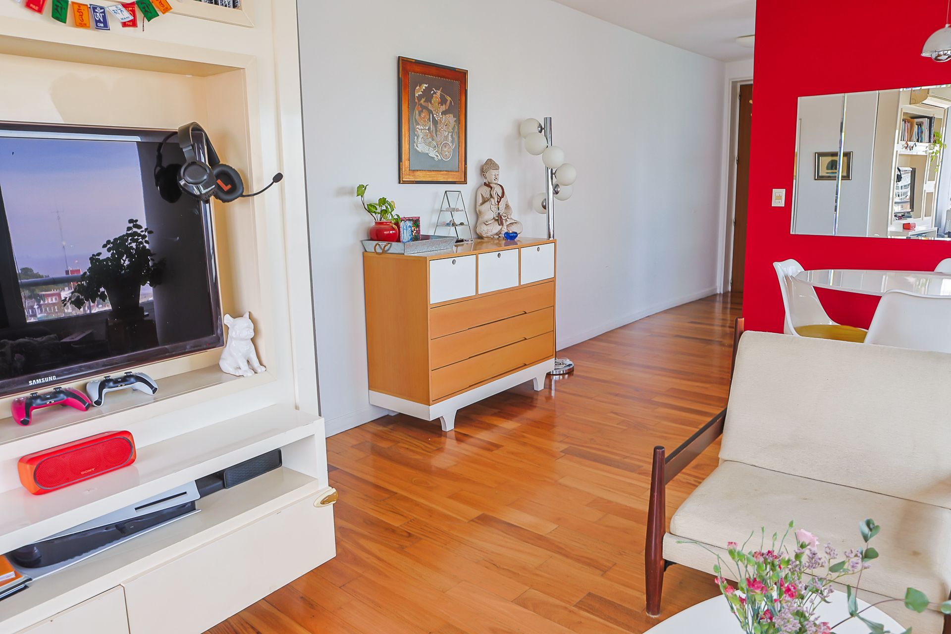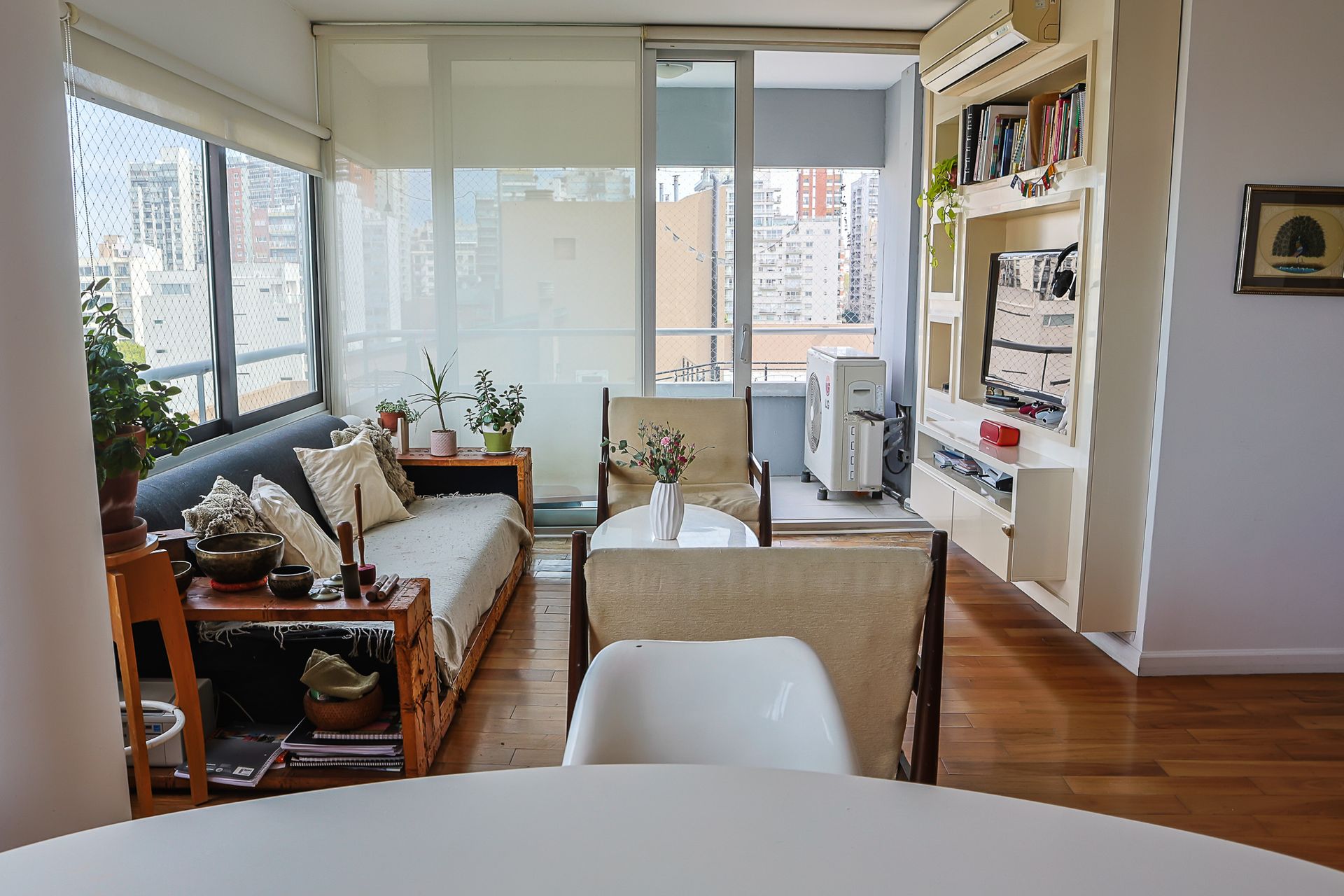 Al ingresar, un amplio living comedor con balcón invita a disfrutar de la luz natural que se filtra a través de los ventanales. El ambiente se amplía con una distribución que favorece la circulación y la comodidad.