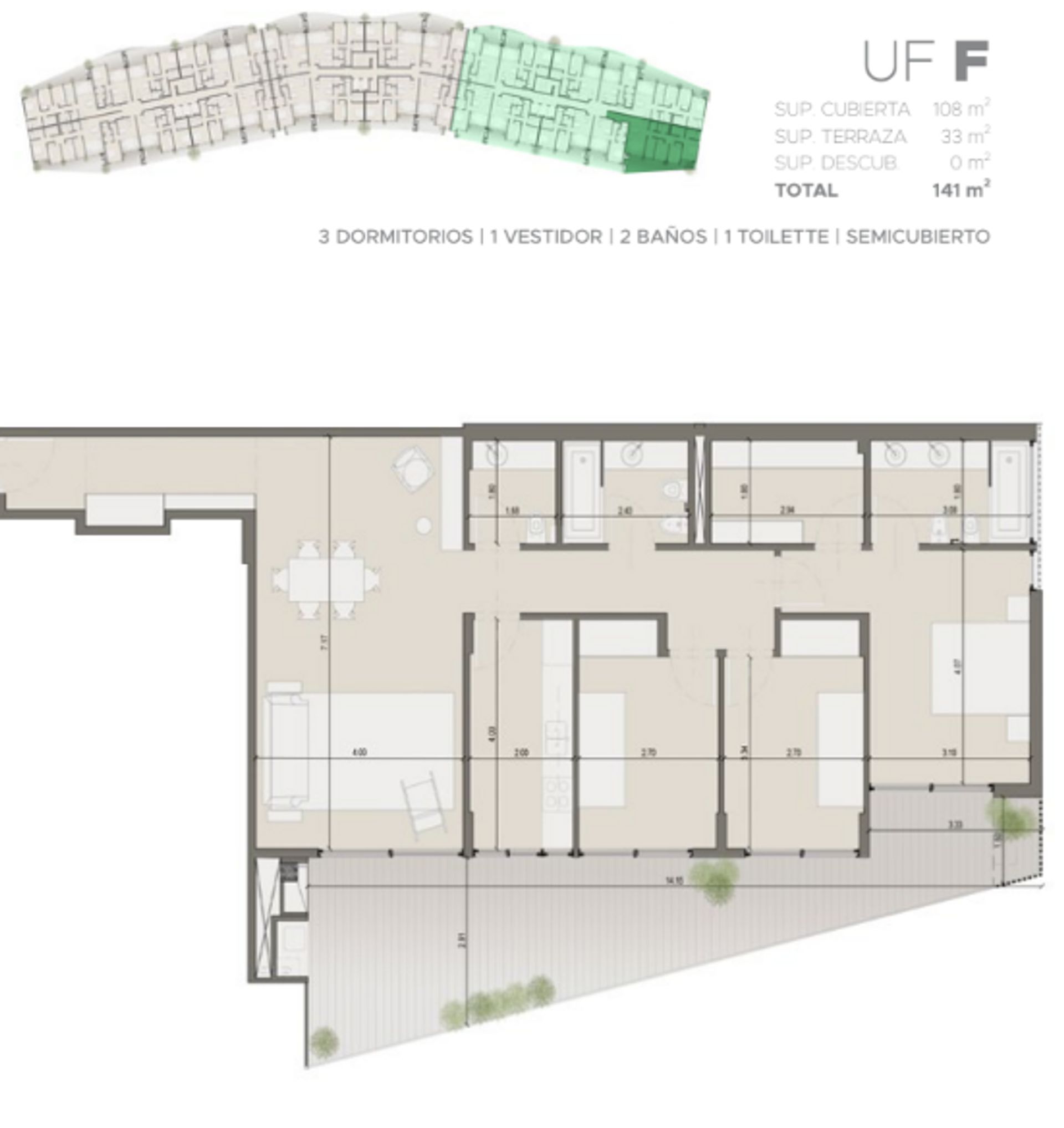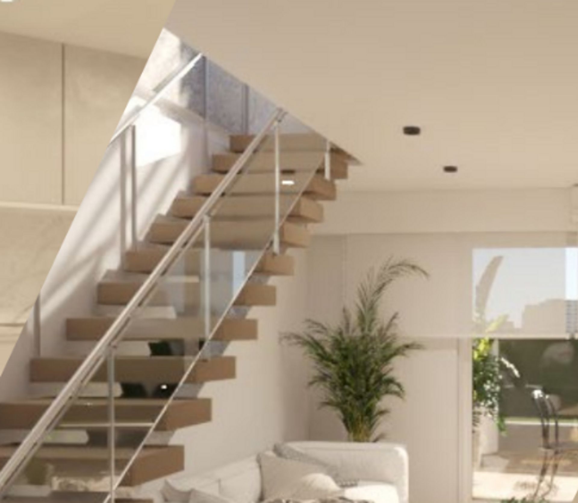La zona principal alberga una master suite con vestidor privado, acompañada de dos dormitorios adicionales y un segundo baño completo, además de un toilette para invitados. Cada estancia está diseñada para maximizar el espacio y la luz natural.