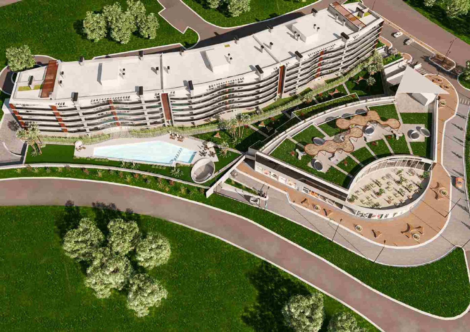 El proyecto cuenta con acceso con seguridad y circuito cerrado de cámaras, piscina, vestuarios, solarium, gimnasio, lavandería, SUM y áreas comunes de parrilla. Cada unidad dispone de su propio jardín o terraza, y las de cuatro ambientes incluyen terrazas privadas con vistas panorámicas.