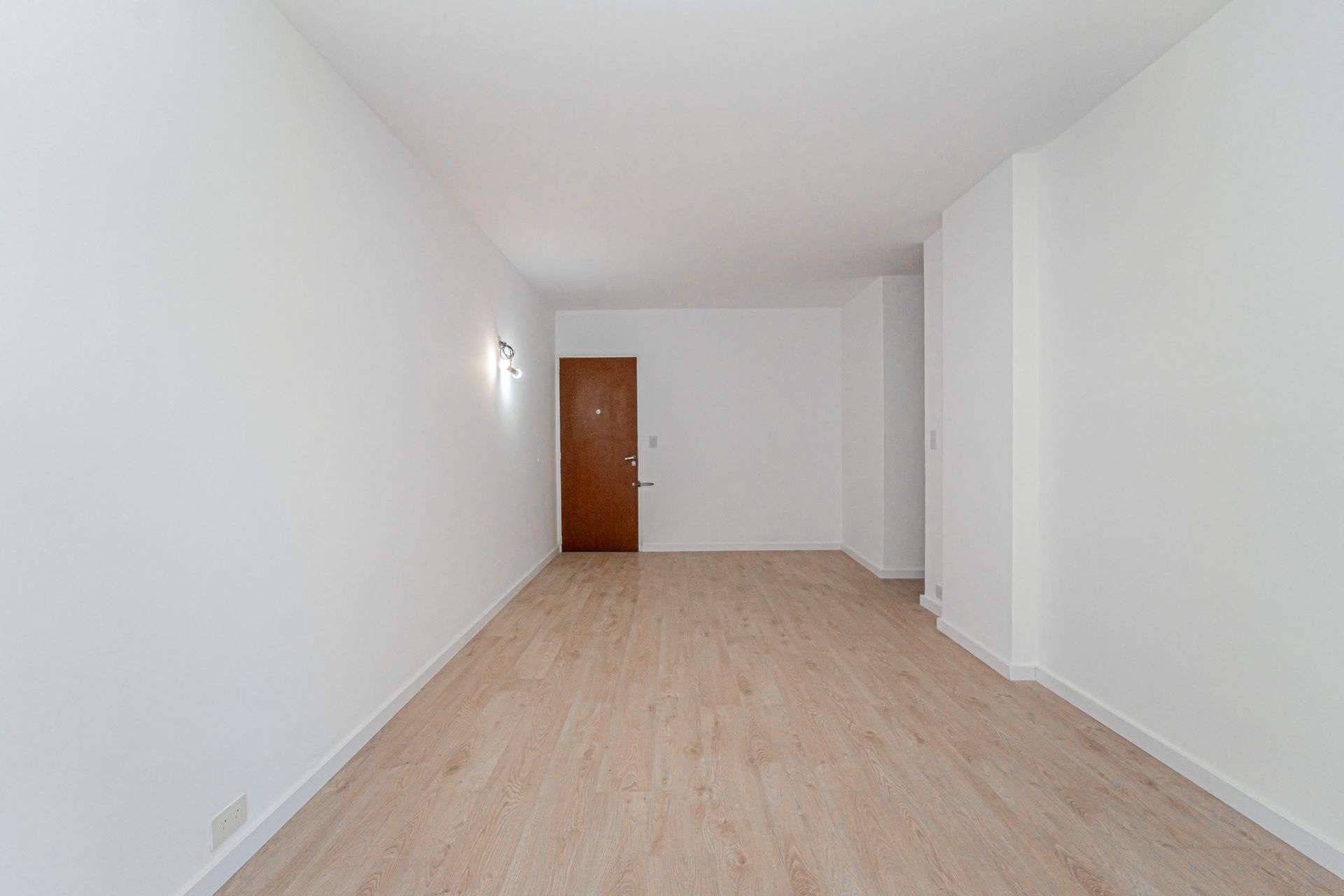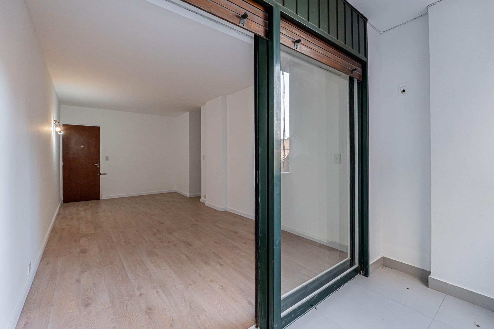 El hall de distribución conduce a un amplio living comedor con salida al balcón, ideal para disfrutar de la vista y la brisa. La habitación, con vestidor y placard de piso a techo, ofrece un espacio amplio y organizado. El baño completo está equipado con acabados de calidad y diseño contemporáneo.