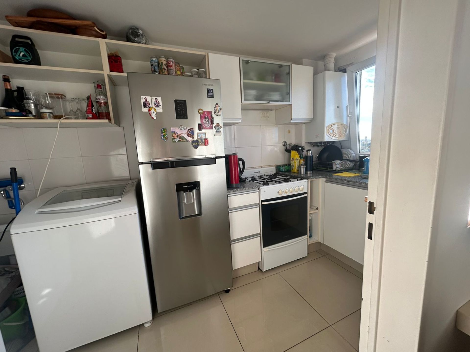 La cocina, de estilo contemporáneo, cuenta con barra y conexión para lavarropas, facilitando la preparación de comidas en un ambiente funcional y estético. El dormitorio principal es amplio y cuenta con vestidor y placard, brindando un espacio de almacenamiento cómodo y organizado. El baño completo incorpora acabados modernos y funcionales. Todo el conjunto está en perfecto estado de conservación y la cochera techada incluida añade comodidad y seguridad a la propiedad.