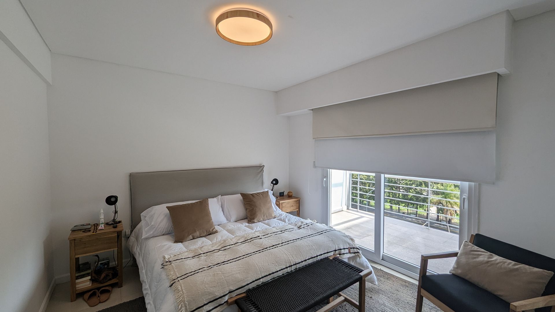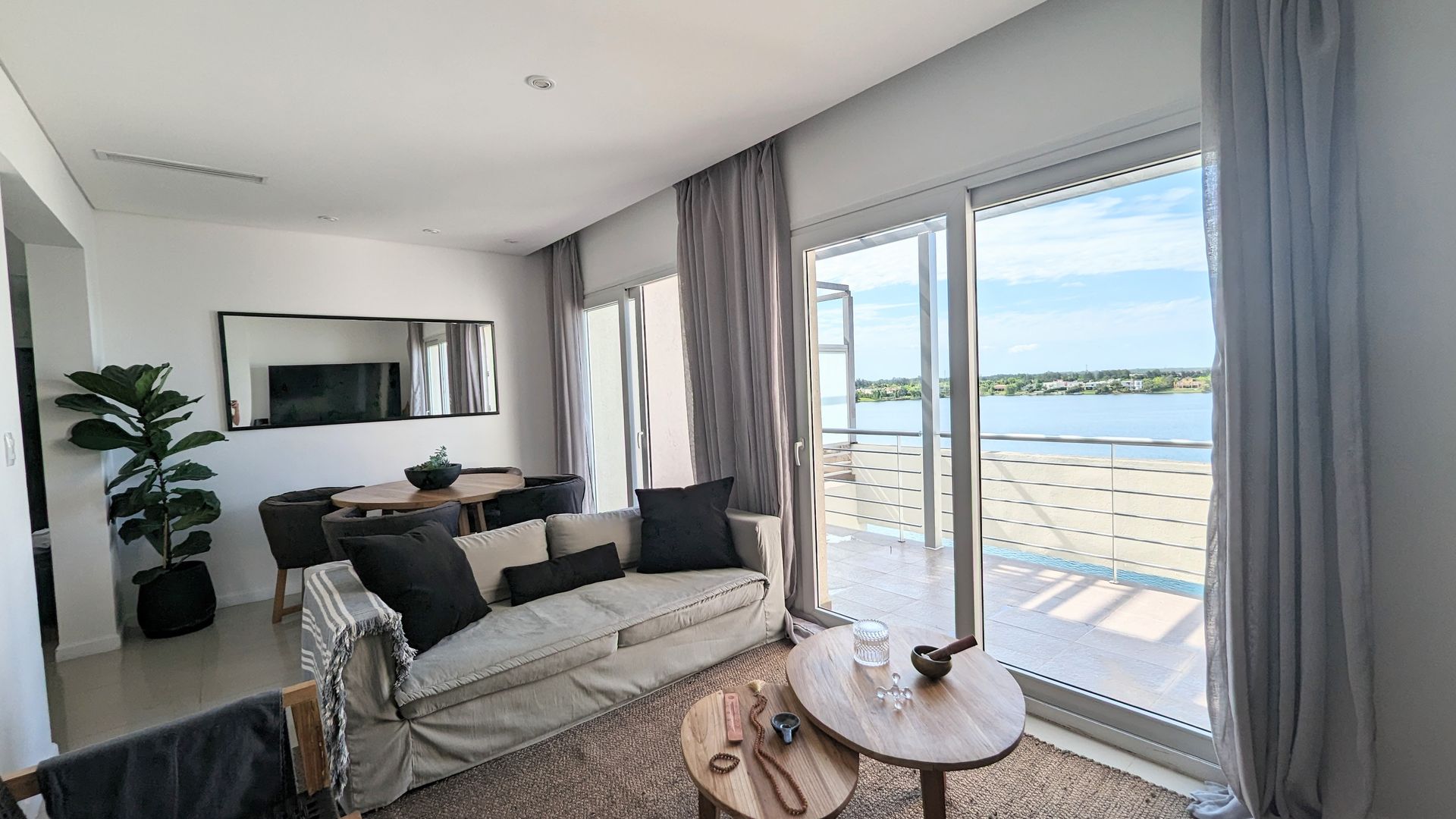 Con 65 m² cubiertos y 21 m² de terrazas, el espacio se compone de dormitorio principal con salida a terraza privada, estar-comedor con balcón corrido y vistas al agua, cocina independiente y baño completo con bañera, ventilación y luz natural. Los acabados de calidad incluyen aberturas de PVC blanco, pisos de porcelanato brillante, frentes e interior de placard, y muebles de cocina bajo mesada y alacena. La cocina dispone de conexión para lavarropas y lavavajillas, mientras que el edificio cuenta con lavandería, sistema de agua caliente, calefacción y refrigeración central, evitando la instalación de equipos adicionales en la unidad.