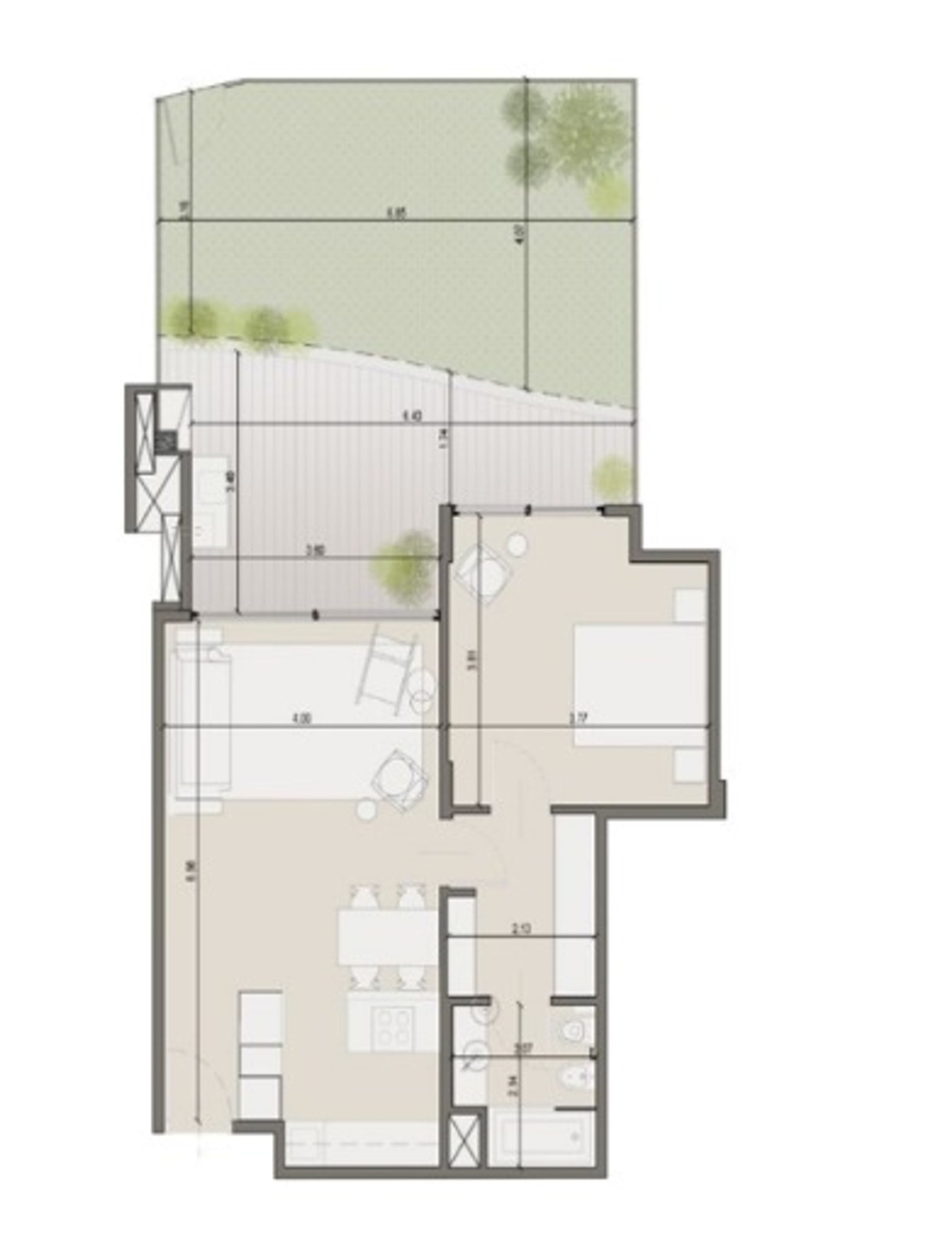 Ubicado en Torre Zafiro, este departamento de 2 ambientes combina confort y estilo. La cocina integrada al living-comedor se abre a un jardín privado mediante amplios ventanales, aportando luminosidad y una conexión natural con el exterior. El dormitorio en suite cuenta con vestidor completo y acceso directo al jardín, creando un espacio íntimo y funcional.