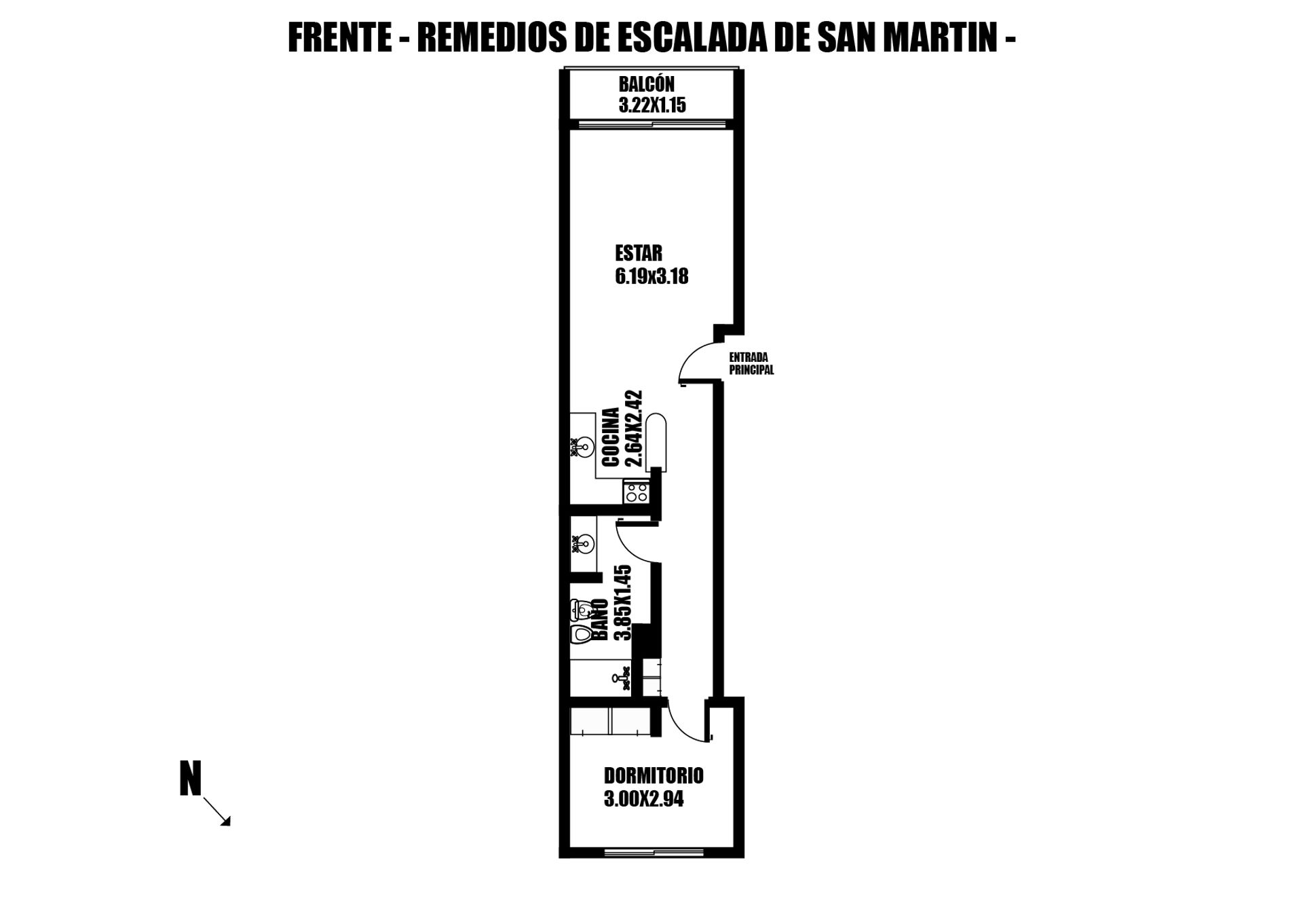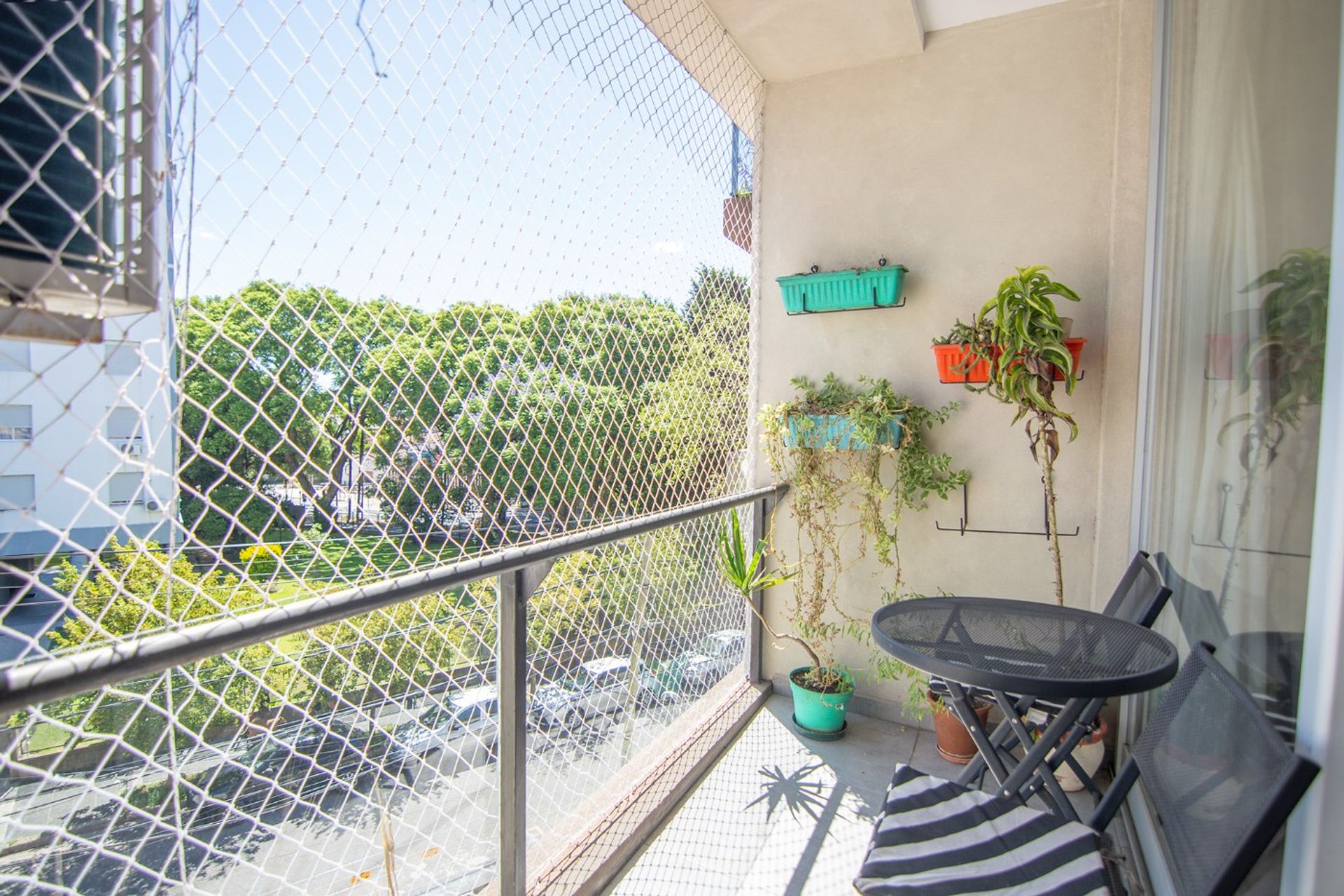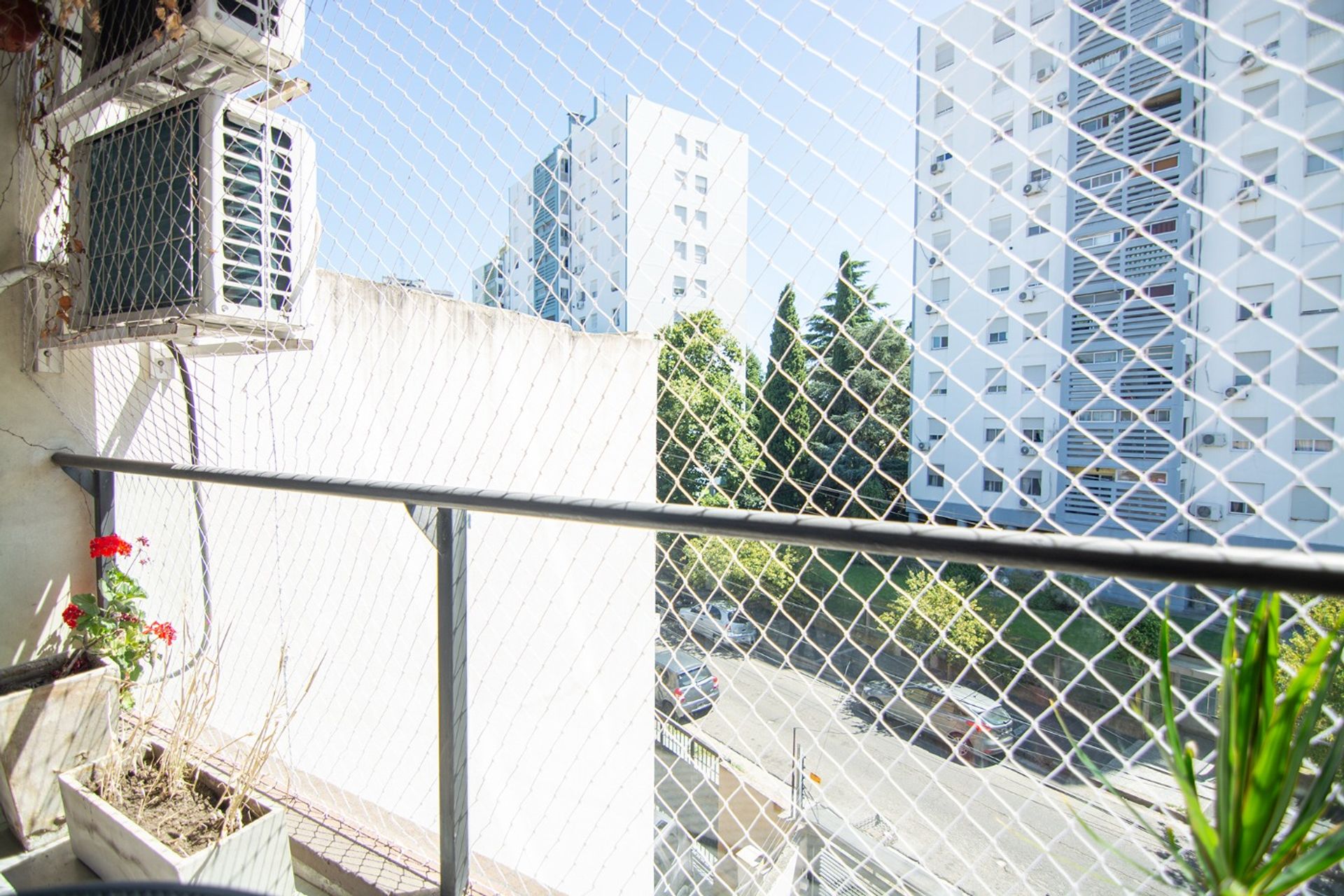 El dormitorio se ubica al contrafrente con orientación este, ofreciendo vista a un pulmón de manzana abierto que garantiza tranquilidad y excelente ventilación. Un baño completo completa la unidad.
