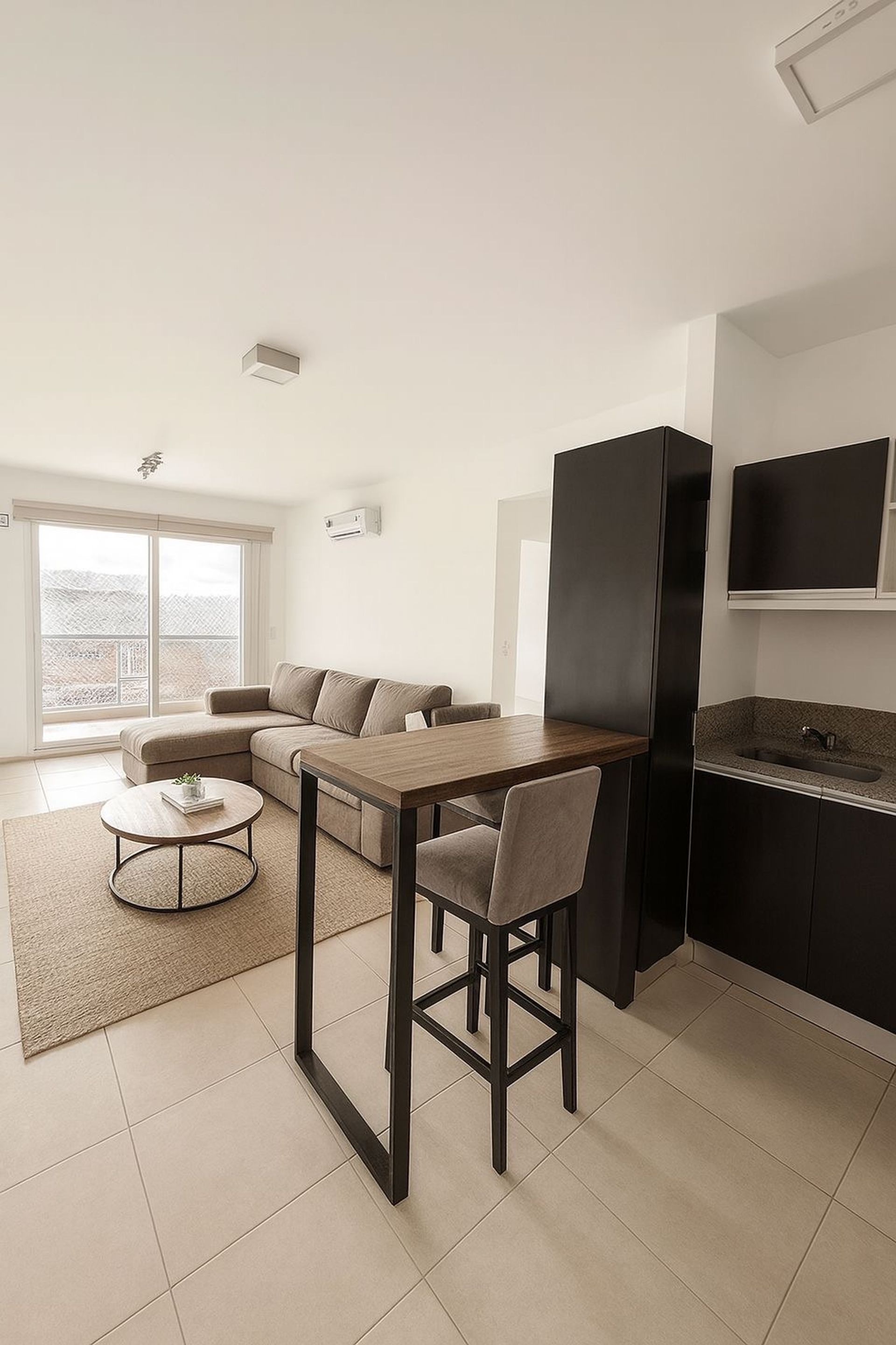 Este lujoso departamento de dos ambientes se ubica en el quinto piso del prestigioso complejo Miradores de la Bahía, en Nordelta, ofreciendo vistas panorámicas a la bahía y al jardín del entorno. El espacio cuenta con una cocina integrada, equipada con barra desayunadora y muebles bajo mesada, que se abre a una sala-comedor con aire acondicionado y calefacción centralizada. Un amplio balcón con parrilla brinda acceso al aire libre y permite disfrutar de la vista al río y al paisaje verde del complejo. Además, un toilette se encuentra convenientemente ubicado junto a la cocina.