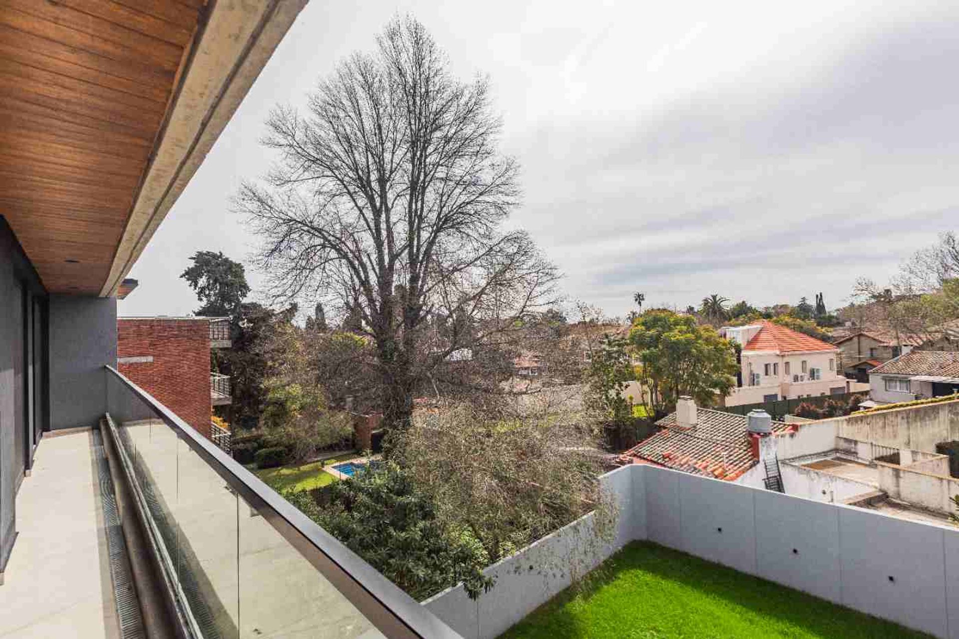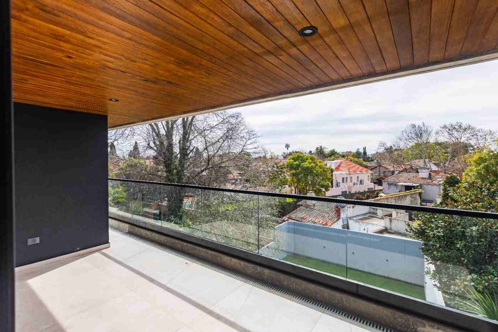 El interior presenta acabados de primera calidad: carpintería en PVC con doble vidrio hermético, barandillas de vidrio laminado con pasamanos de aluminio, pisos de porcelanato en áreas de estar, comedor y dormitorios, griferías FV/Hansgrohe con cierre cerámico, accesorios de baño marca FV y revestimientos en baños y cocina con porcelanato de alta calidad.