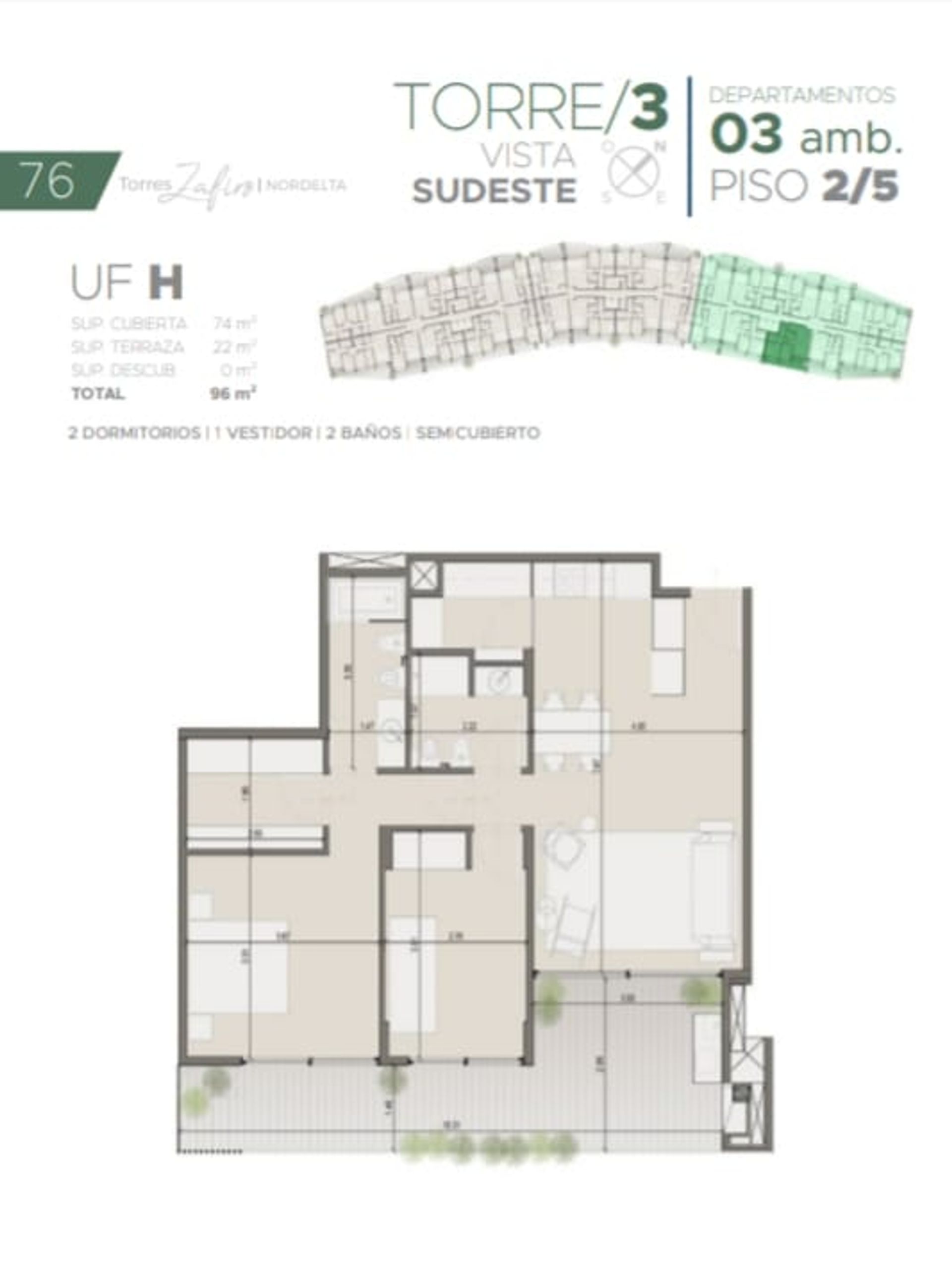 La propuesta contempla unidades de 2, 3 y 4 ambientes, cada una con su propia cochera. Los apartamentos cuentan con piscina, SUM, gimnasio, lavandería, solárium, parque, bauleras privadas y jardines que ofrecen amplias vistas al verde. Los departamentos del primer nivel incluyen un jardín privado; los de las plantas segunda a quinta disponen de balcones amplios, mientras que los de la sexta planta, de cuatro ambientes, ofrecen terrazas privadas con vistas panorámicas inigualables. Todas las unidades están equipadas con parrilla y cuentan con losa radiante y sistema individual de aire frío-calor, adaptados a las características ambientales de la zona.