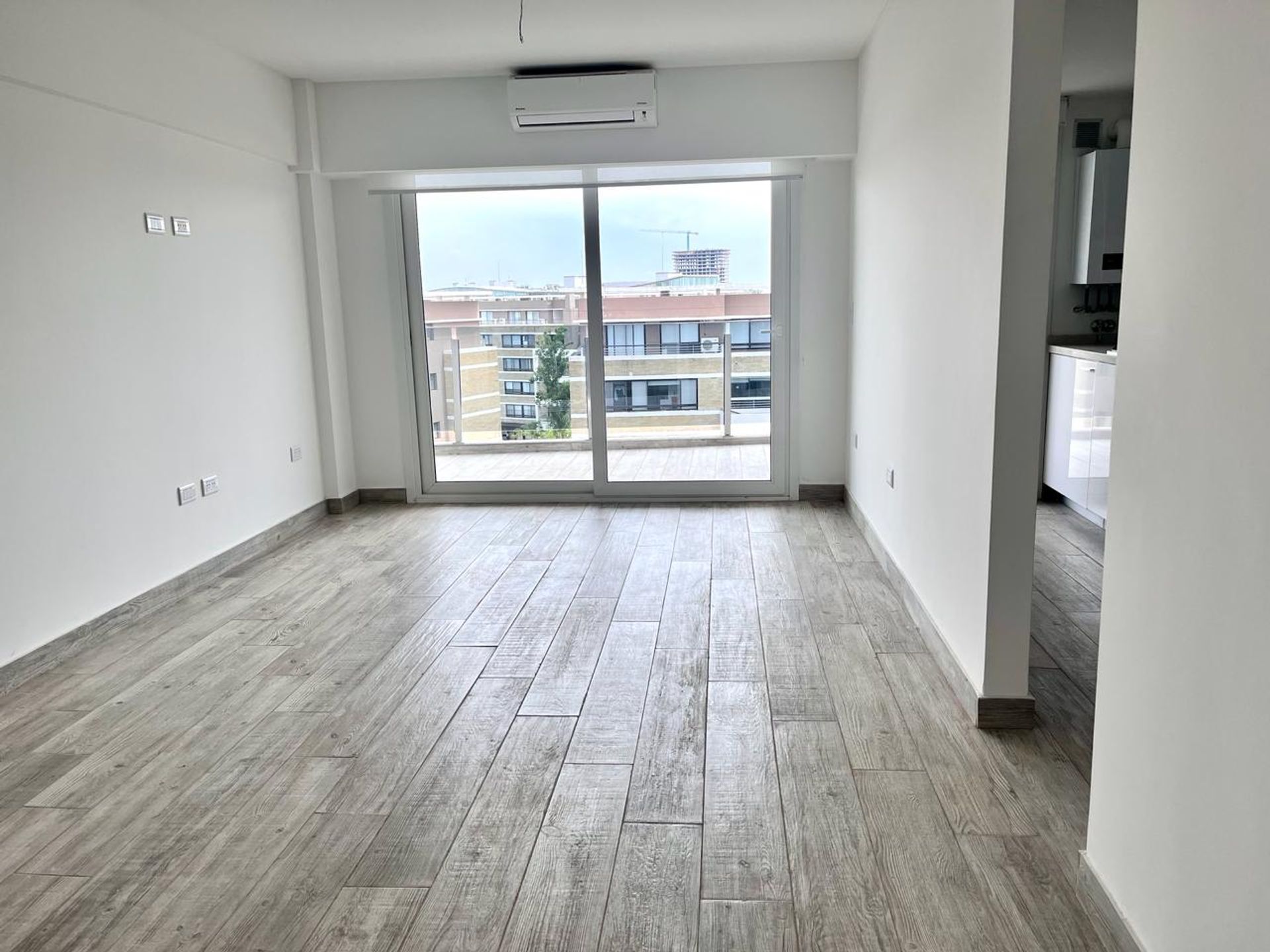 Al entrar por el hall se abre un imponente living comedor, bañado por un amplio ventanal que inunda el espacio de luz natural. La cocina, separada del salón, cuenta con alacenas y encimera, además de un lavadero funcional. En la zona de servicios se encuentran un toilette, un baño completo, un vestidor y una habitación cómoda. Todos los ambientes disponen de salida al balcón corrido, donde se instala una elegante parrilla para disfrutar de momentos al aire libre.