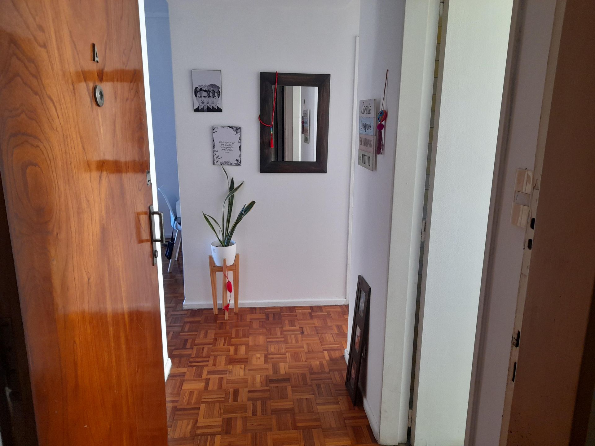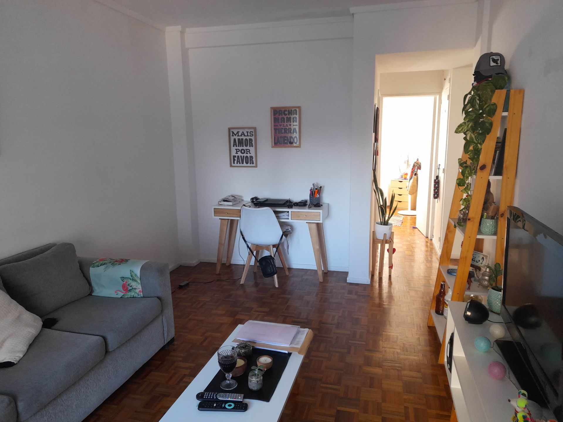 El salón comedor presenta pisos de parquet y acceso directo al balcón. La vista al río se combina con una iluminación natural que realza los espacios. El dormitorio, orientado al oeste, dispone de pisos de parquet, armario empotrado y sol por la tarde, con vistas abiertas.
