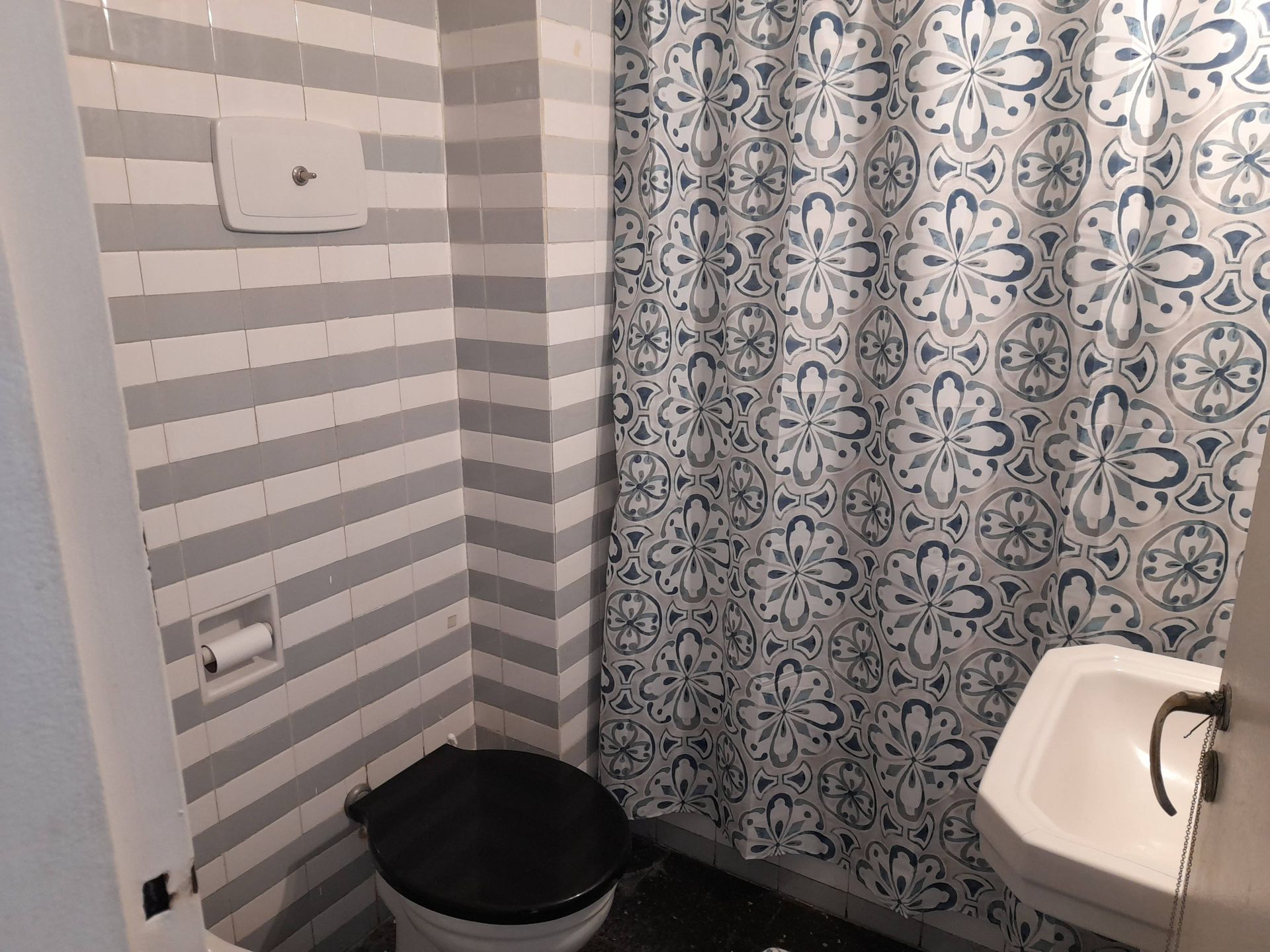 El baño completo cuenta con bañera y acabados de época.