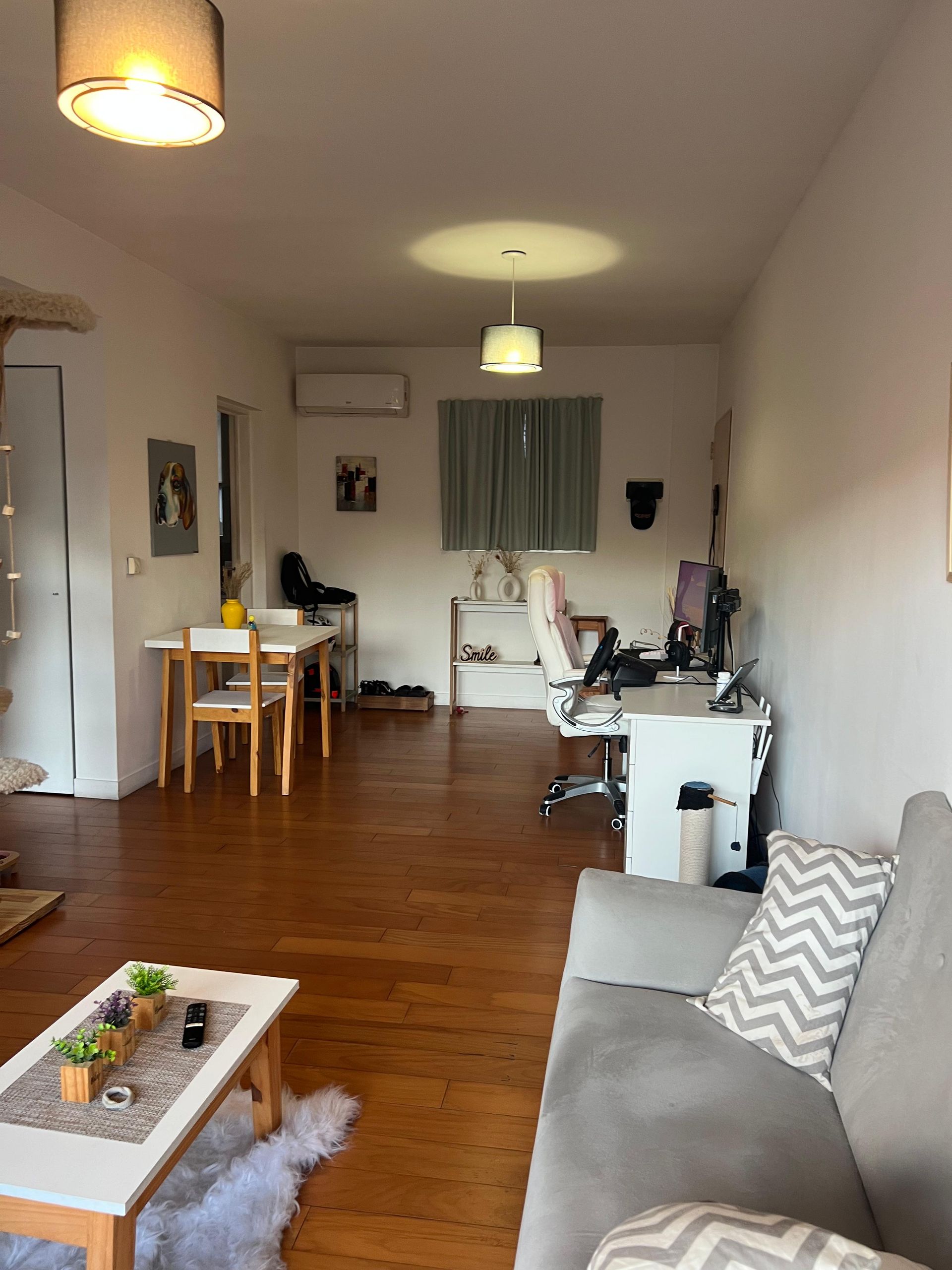 Departamento de 2 ambientes con distribución funcional y elegante. El amplio living comedor se abre a un balcón corrido que invita a disfrutar de la vista y al aire libre, equipado con parrilla propia para reuniones y celebraciones. Los pisos de parquet combinados con loza radiante garantizan confort térmico y estilo contemporáneo.