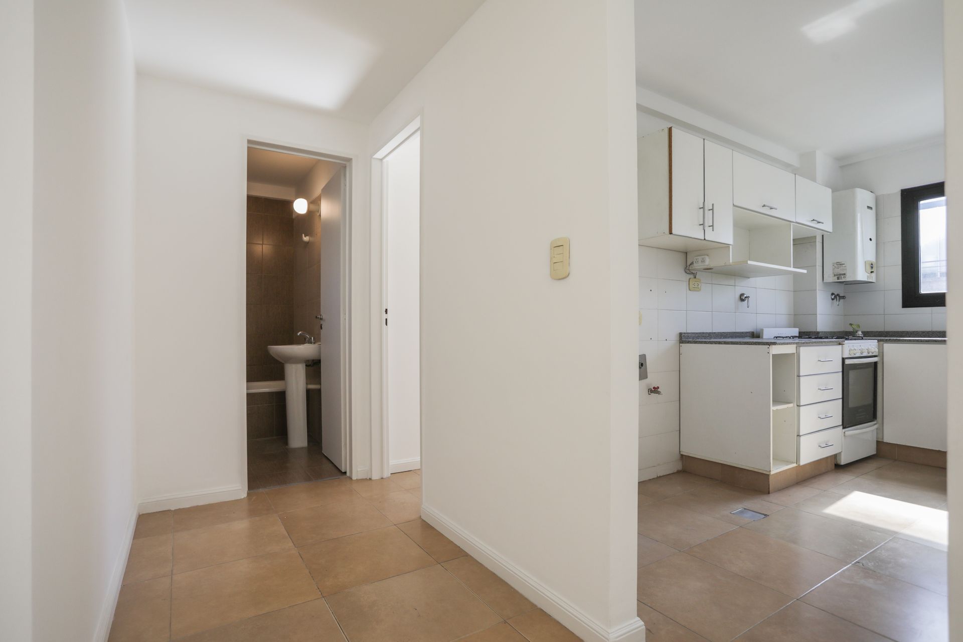 Situado en el tercer piso, con vista frontal, este departamento de dos ambientes combina una distribución funcional con abundante luz natural. En el área de living y comedor se abre a un balcón, ideal para disfrutar de la brisa y la vista. La cocina independiente, equipada con alacenas, muebles bajo mesada y desagüe para lavarropa, ofrece un espacio práctico y elegante. El dormitorio, con ventanal y placard de piso a techo, brinda comodidad y organización. El baño completo cuenta con ventilación, garantizando un ambiente fresco.