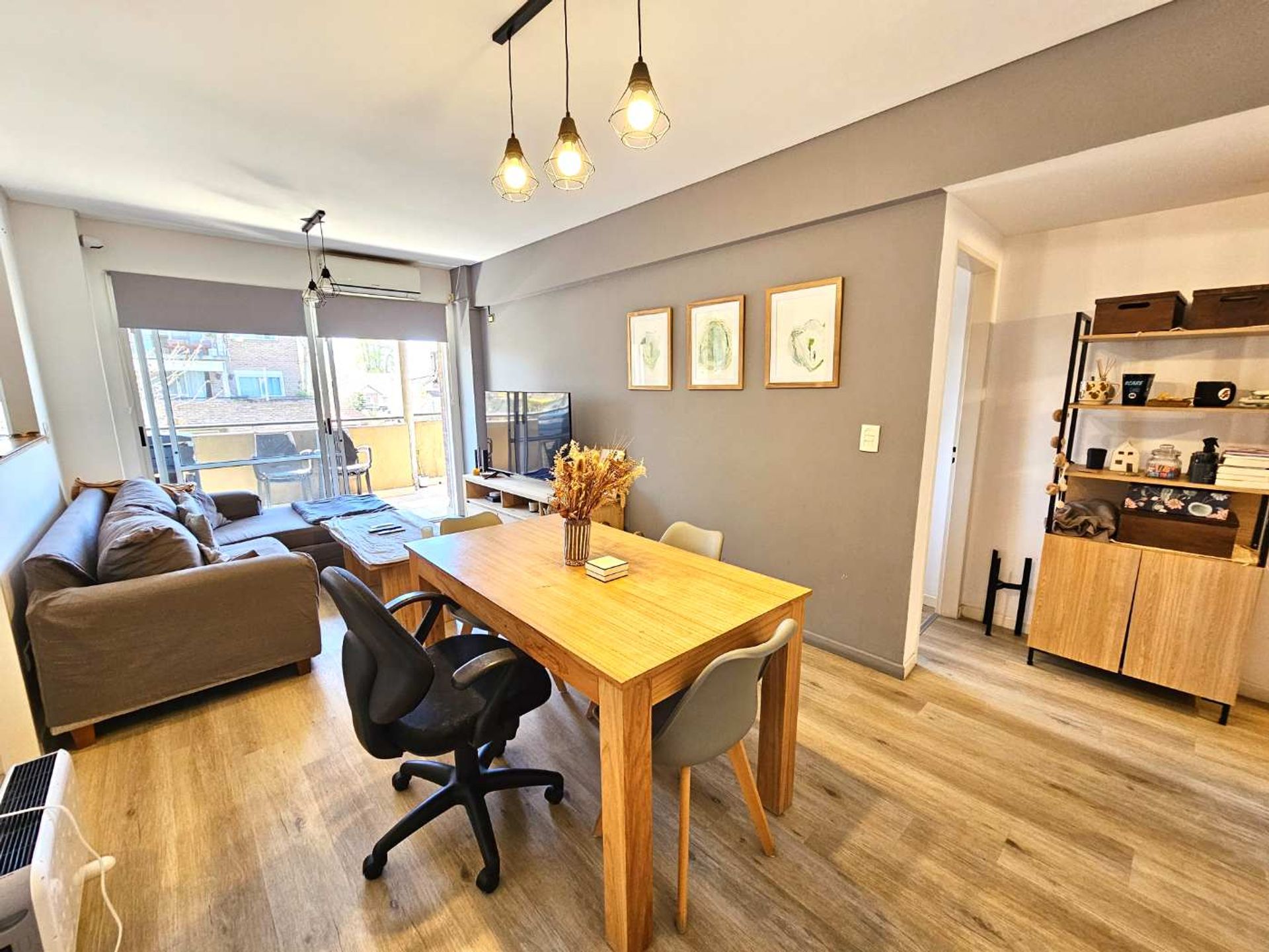 Al entrar, el espacio se abre a un living-comedor de gran amplitud que se integra con la cocina equipada con barra desayunadora, ideal para convivir en familia o con amigos. Un toilette está disponible en el pasillo. El dormitorio principal, en suite, cuenta con vestidor y baño completo, ofreciendo privacidad y comodidad.
