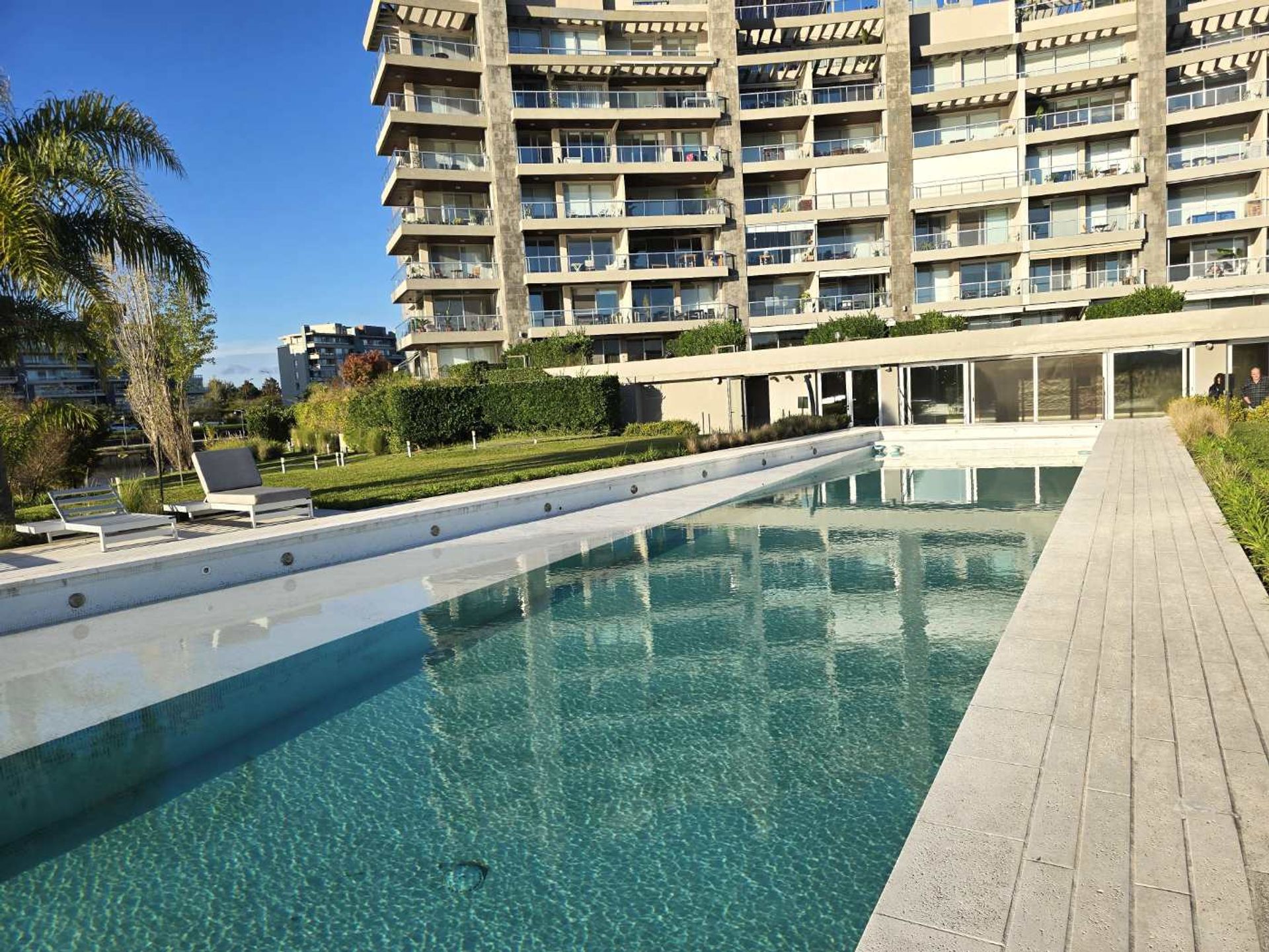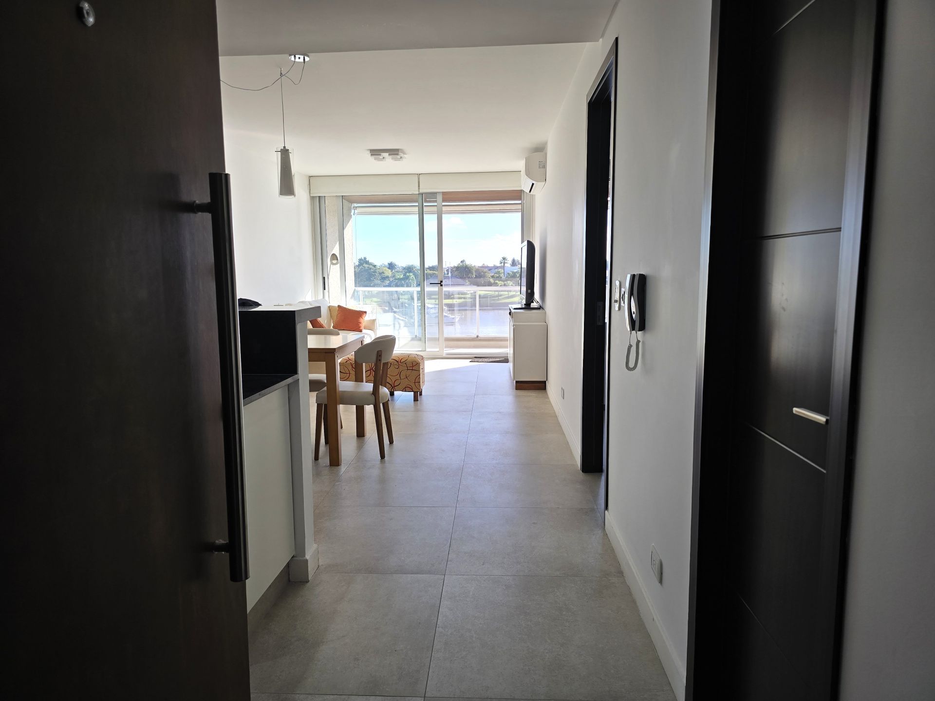 Departamento de 2 ambientes ubicado en el segundo piso del edificio Acqua Río, en Islas del Canal, Nordelta. La unidad ofrece vistas panorámicas abiertas al río, jardines y a la piscina. El salón comedor dispone de salida directa al balcón, mientras que la cocina integrada cuenta con barra desayunadora y espacio para lavadora. En el conjunto se incluye un toilette de recepción. El dormitorio principal es en suite y dispone de vestidor. El balcón corrido está equipado con parrilla. La calefacción se realiza mediante losa radiante con control independiente. La vivienda se encuentra en excelente estado, sin haber sido alquilada previamente. Se incluye cochera y baulera fija cubierta.