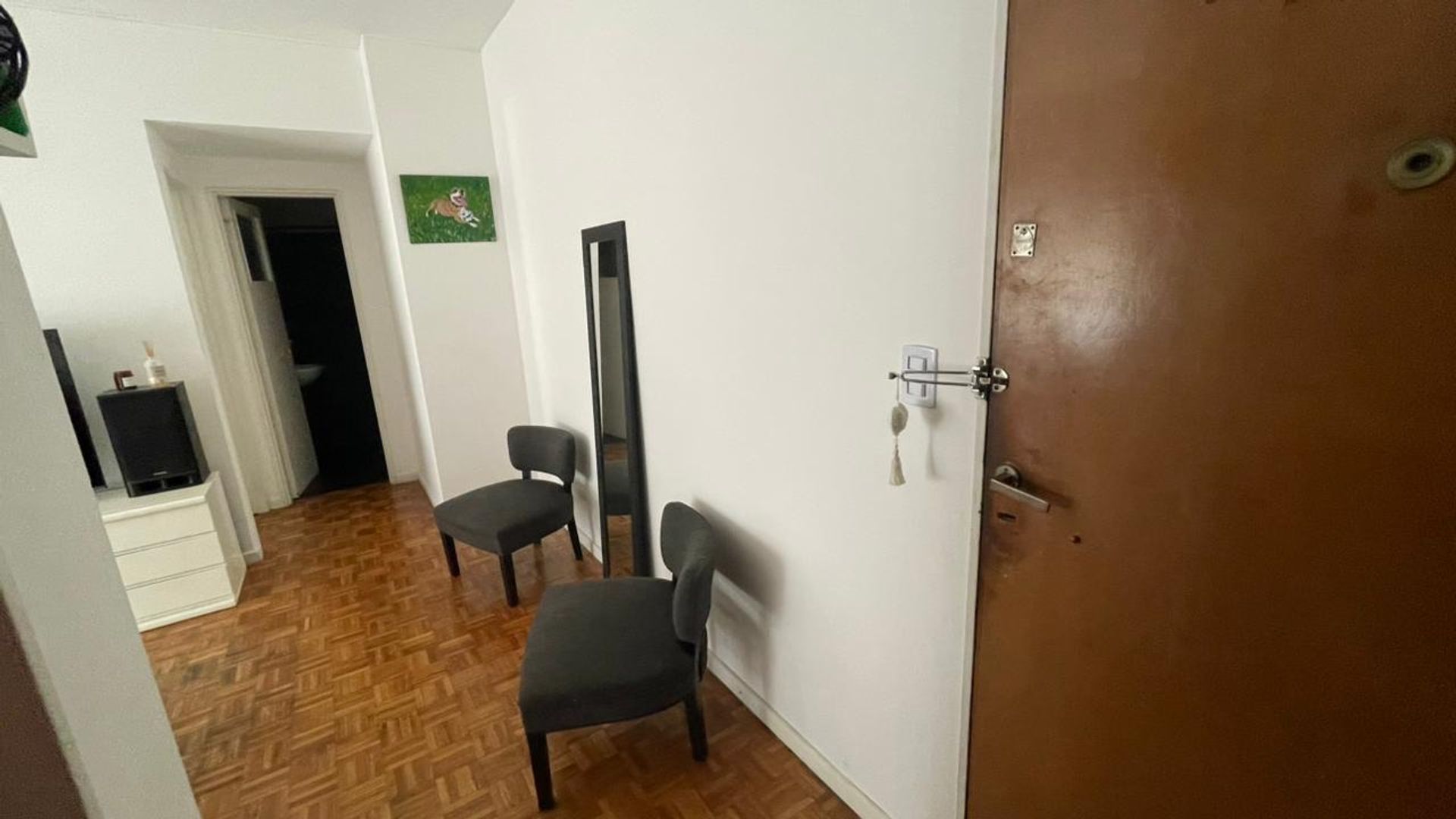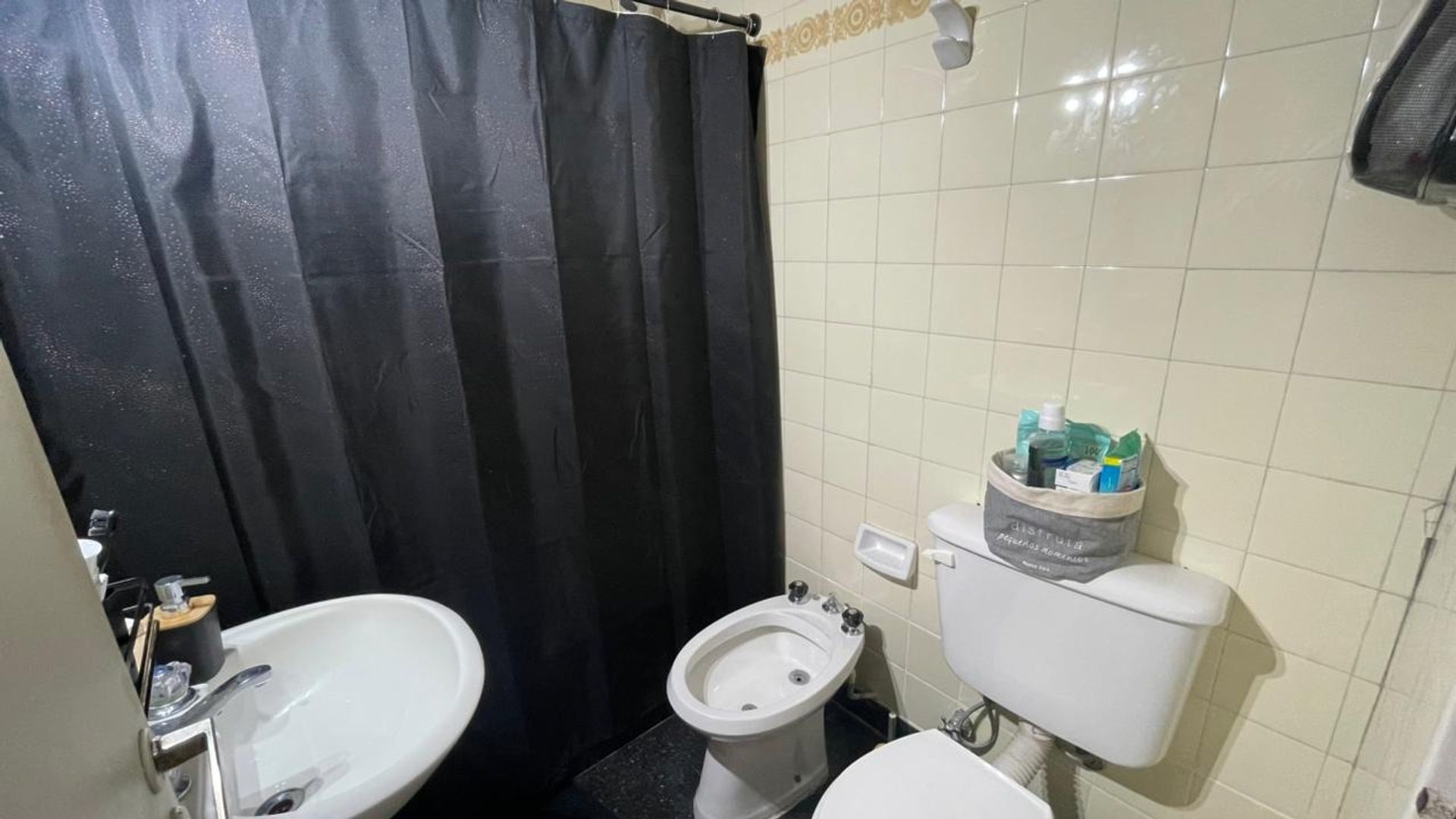 El baño completo está bien equipado, y el ambiente se mantiene fresco gracias a un split de aire acondicionado. La unidad se presenta pintada de blanco, lo que refuerza su sensación de amplitud y luz natural. En general, el departamento está en muy buen estado, listo para entrar a vivir sin necesidad de mejoras.