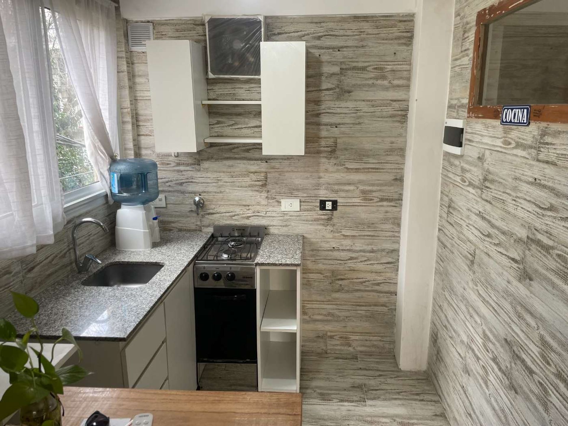 El inmueble se encuentra en la planta baja, frente al frente del edificio, y se accede por una escalera que conduce a un hall de distribución. Desde allí se abre al salón-comedor, con vistas al frente y salida directa al balcón; la cocina, orientada al lateral, ofrece una distribución funcional y luminosa. El dormitorio principal, con vista al frente, incluye un vestidor a medida y un baño completo con acabados modernos.