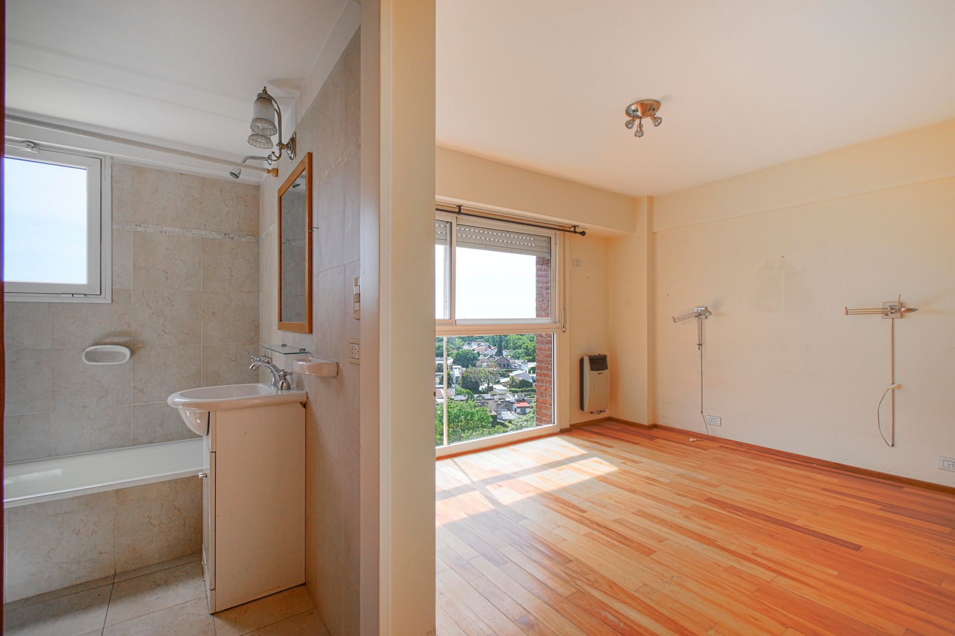El amplio living-comedor se abre a un balcón, ideal para disfrutar del aire libre y la vista panorámica. La cocina, espaciosa y funcional, incluye un comedor diario para momentos de convivencia. Tres dormitorios cuentan con placards, mientras que el dormitorio principal ofrece un baño en suite. Además, se dispone de un segundo baño completo. Los pisos de madera, la calefacción por tiro balanceado y el aire acondicionado garantizan un ambiente confortable durante todo el año. La propiedad incluye una cochera doble cubierta y baulera, brindando comodidad y seguridad para el vehículo y el equipaje.