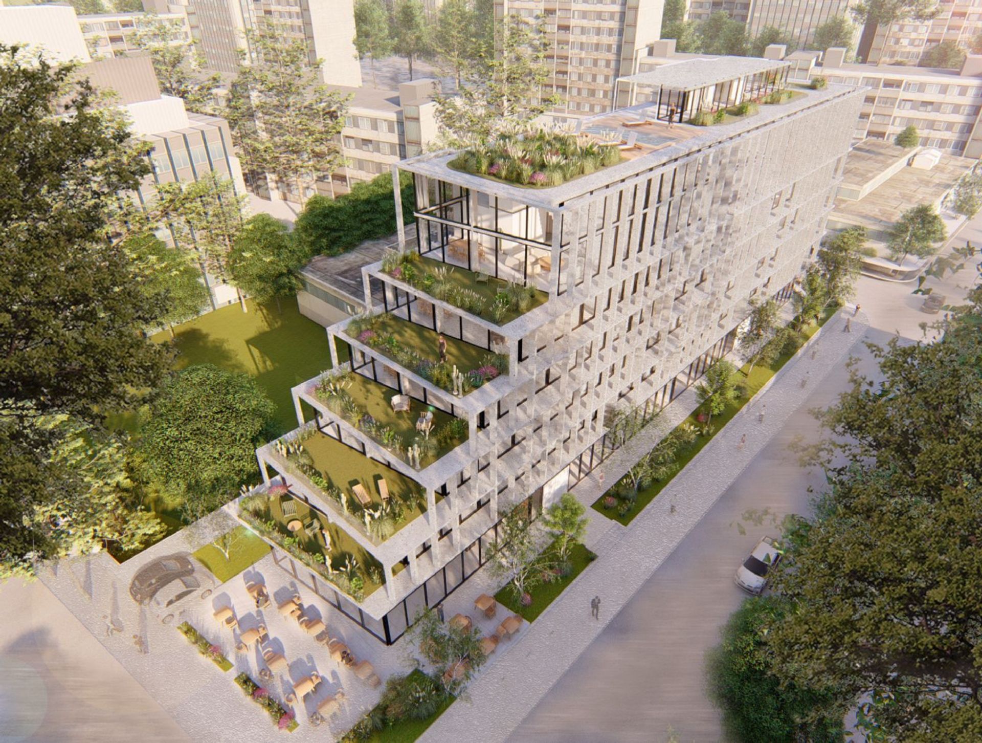 El edificio ofrece una experiencia de vida completa: un hall de entrada de categoría, un sector de azotea con pileta, solarium y terraza verde equipada con parrilla, gimnasio de última generación, ascensores automáticos de acero inoxidable y un grupo electrógeno que asegura el funcionamiento continuo de los ascensores. La parquización está disponible tanto interior como exterior, con 43 espacios de estacionamiento subterráneo. En la planta baja se encuentran locales gastronómicos de categoría que añaden conveniencia y estilo al entorno. La instalación eléctrica incluye portero eléctrico, bocas de CATV, televisión y datos, garantizando conectividad y seguridad.