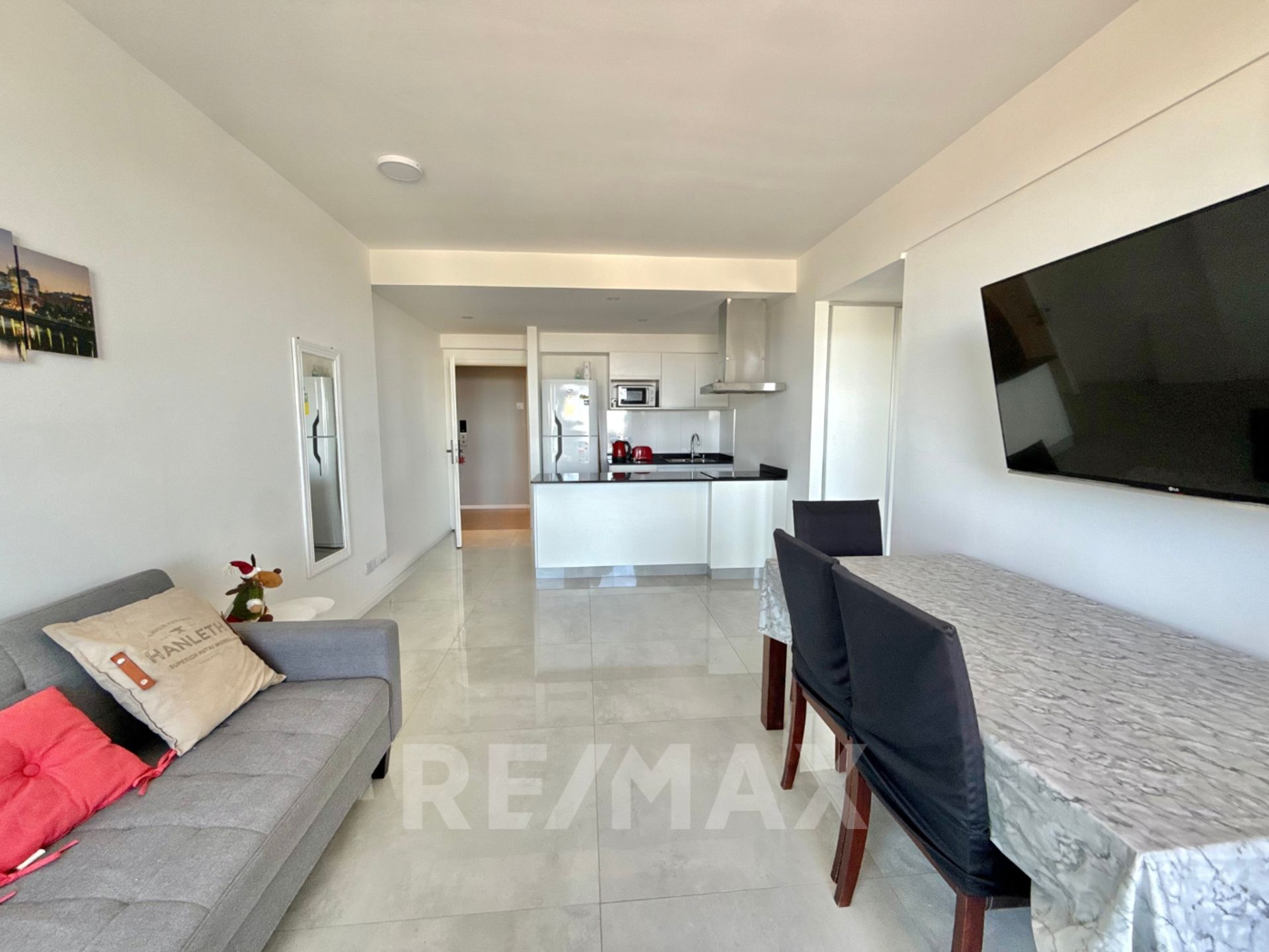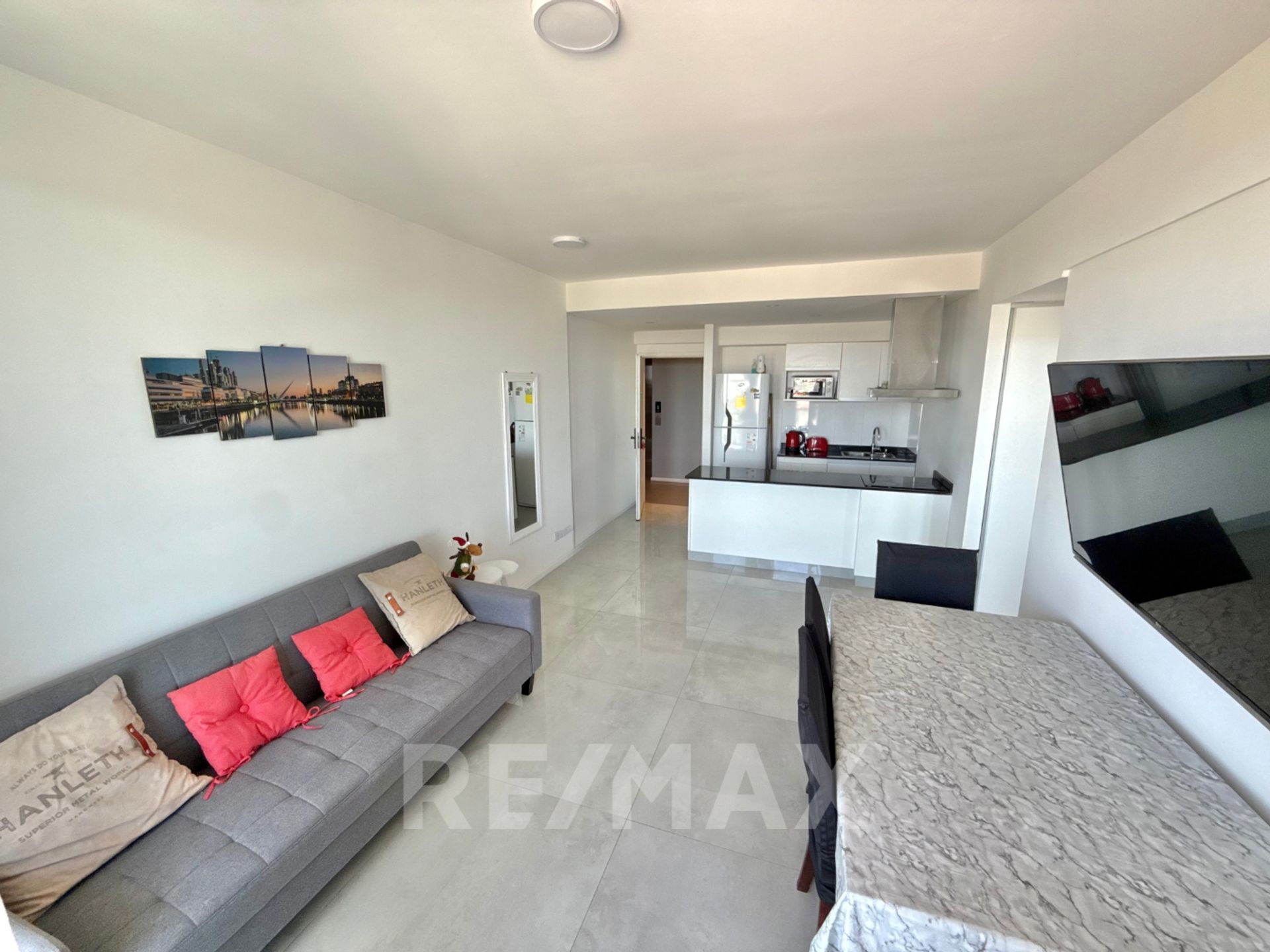 La cocina, de estilo contemporáneo, incluye desayunador, muebles bajo y sobre la mesa, y preinstalación para lavarropas o lavavajillas. El salón y comedor se abren directamente a un balcón, ideal para disfrutar de la luz y la vista.