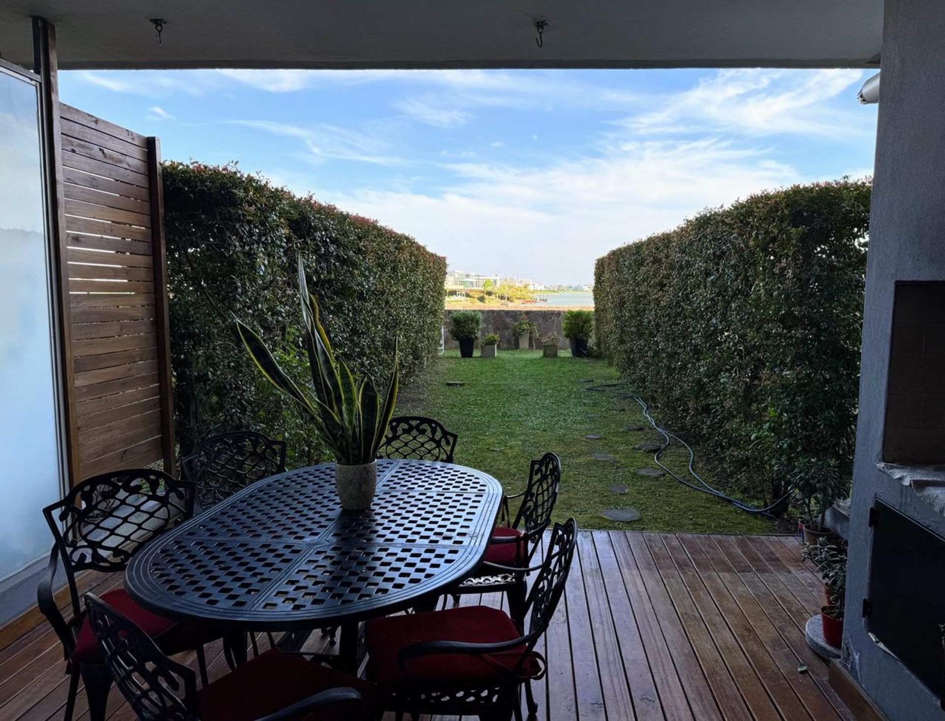La propiedad incluye dos cocheras, una fija cubierta y otra semicubierta, además de una baulera para el almacenamiento adicional. Entre los amenities de la comunidad destacan la pileta, solárium, jardines, muelle y servicio de laundry, así como cocheras de cortesía para los residentes.