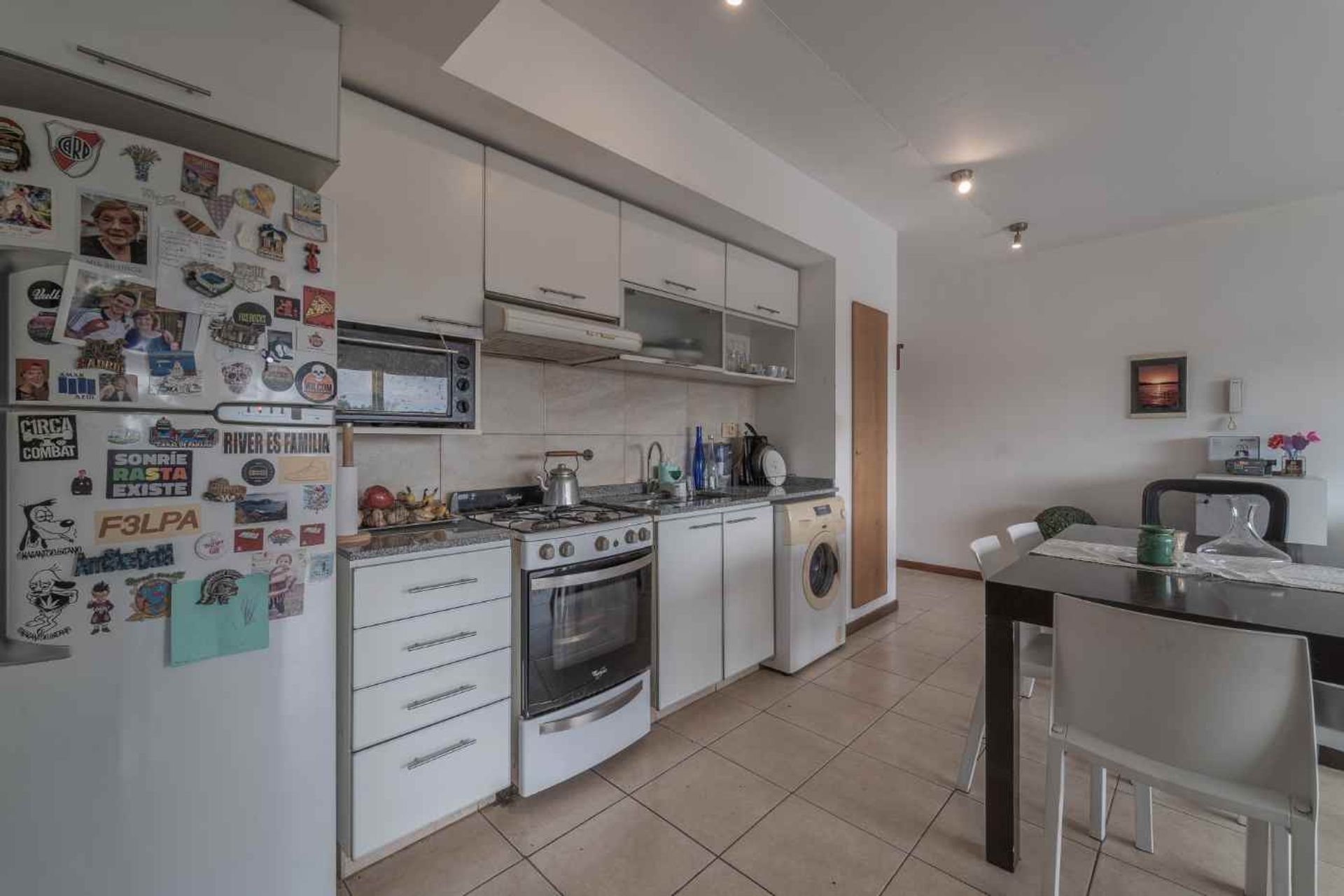 La cocina se integra al living, ofreciendo conexión para lavarropa y termotanque, y se beneficia de una orientación norte que brinda abundante luz natural y vistas abiertas. El dormitorio cuenta con amplio placard y espacio de guardado adicional. Un balcón corrido se accede desde el living y el dormitorio, añadiendo un espacio exterior funcional y agradable. La calefacción se realiza mediante losa radiante sectorizada, asegurando confort durante todo el año. El baño completo, moderno y con ventana, garantiza luminosidad y ventilación óptima.