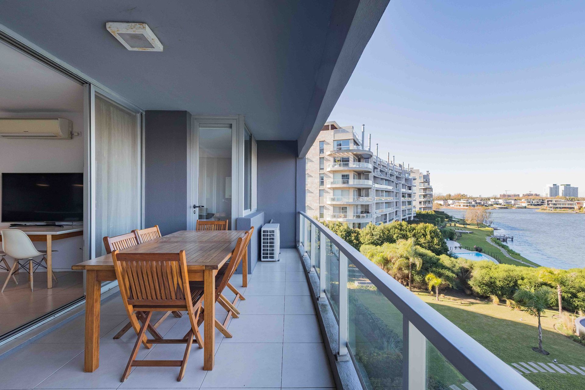 Departamento de 2 ambientes con 55 m² cubiertos y 10 m² de balcón amplio, equipado con parrilla y con vista abierta al lago. El diseño de la vivienda incluye un living‑comedor y una cocina abierta con lavadero, todo ello iluminado por ventanales de piso a techo que garantizan luminosidad natural durante todo el día.