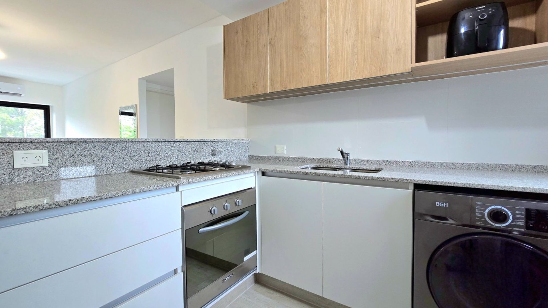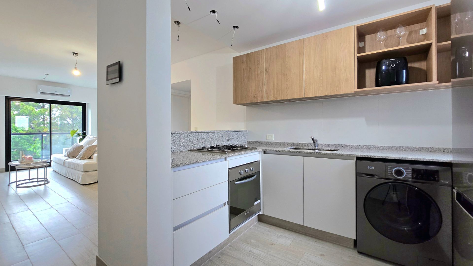 Departamento de 3 ambientes frente, ubicado en el tercer piso con ascensor, de 75 m². Los espacios son luminosos, con excelente orientación y terminaciones modernas. El piso está revestido con porcelanato, las aberturas son de doble vidrio hermético (DVH), cuenta con estufa a gas y equipo de aire frío/calor. La unidad está escriturada, no es primera escritura. Las expensas actuales ascienden a $150.000, con posibilidad de reducción al completarse la ocupación del edificio. Existe la opción de entrega totalmente amoblada por U$S 10.000 adicionales.