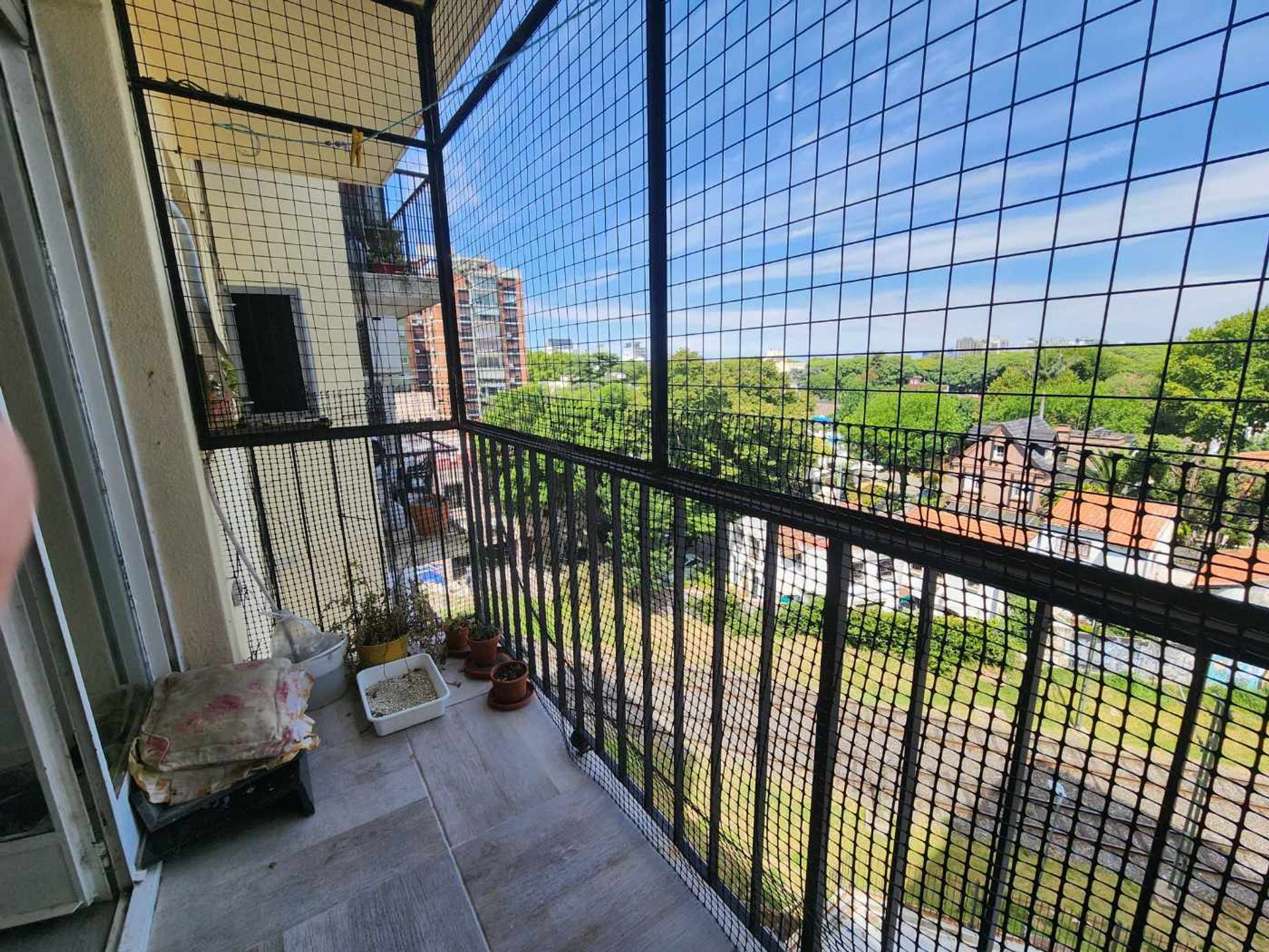 Departamento de tres ambientes, ubicado en el quinto piso de un edificio de referencia en Olivos. La vivienda cuenta con un amplio y luminoso espacio que se abre directamente al balcón, ofreciendo una vista abierta que realza la sensación de amplitud.