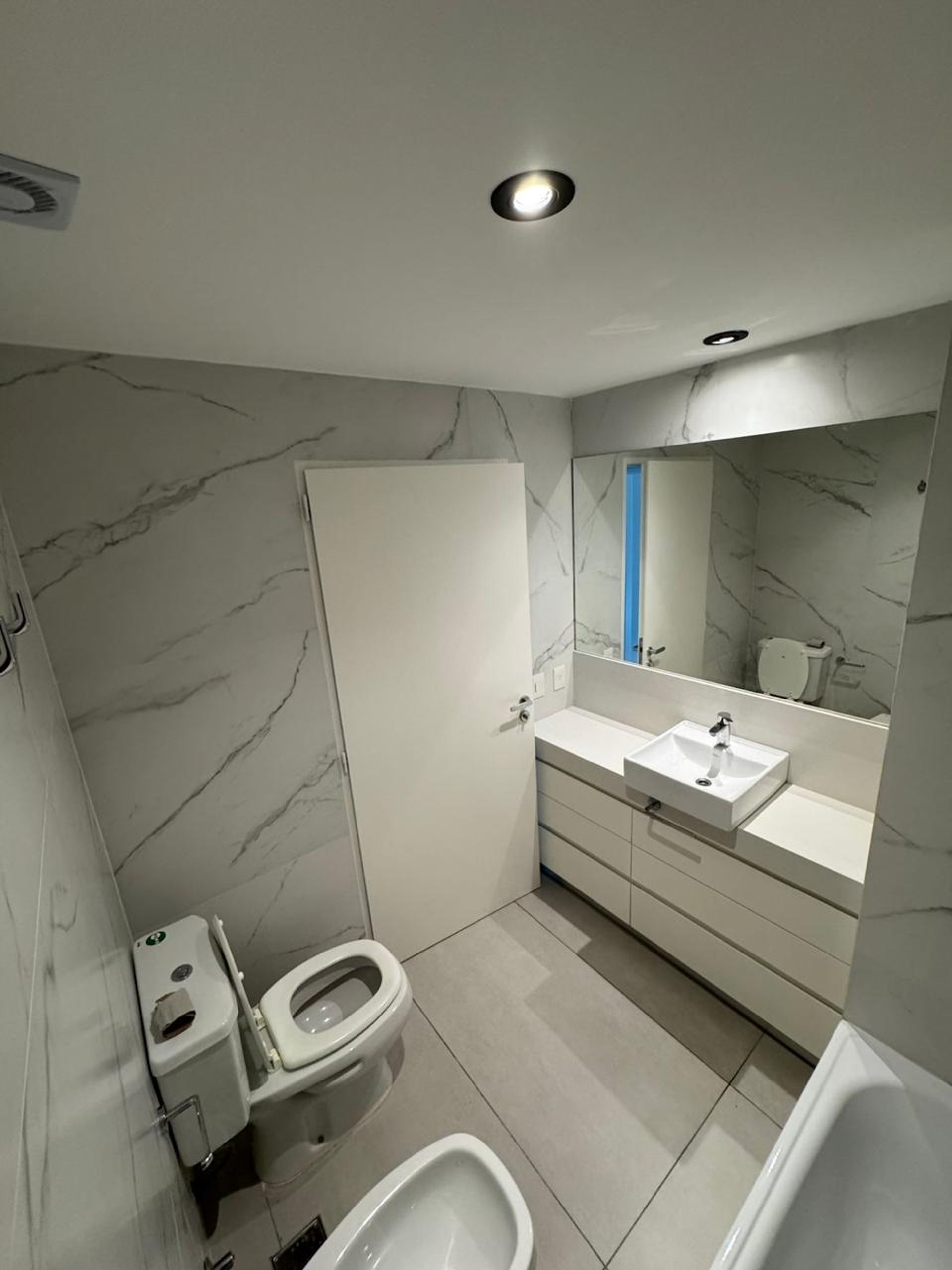 El espacio cuenta con dos habitaciones orientadas al frente, generando un ambiente luminoso y confortable, y dos baños completos equipados con acabados modernos. El interior dispone de aire acondicionado, caldera, horno y anafe, asegurando comodidad y eficiencia energética.