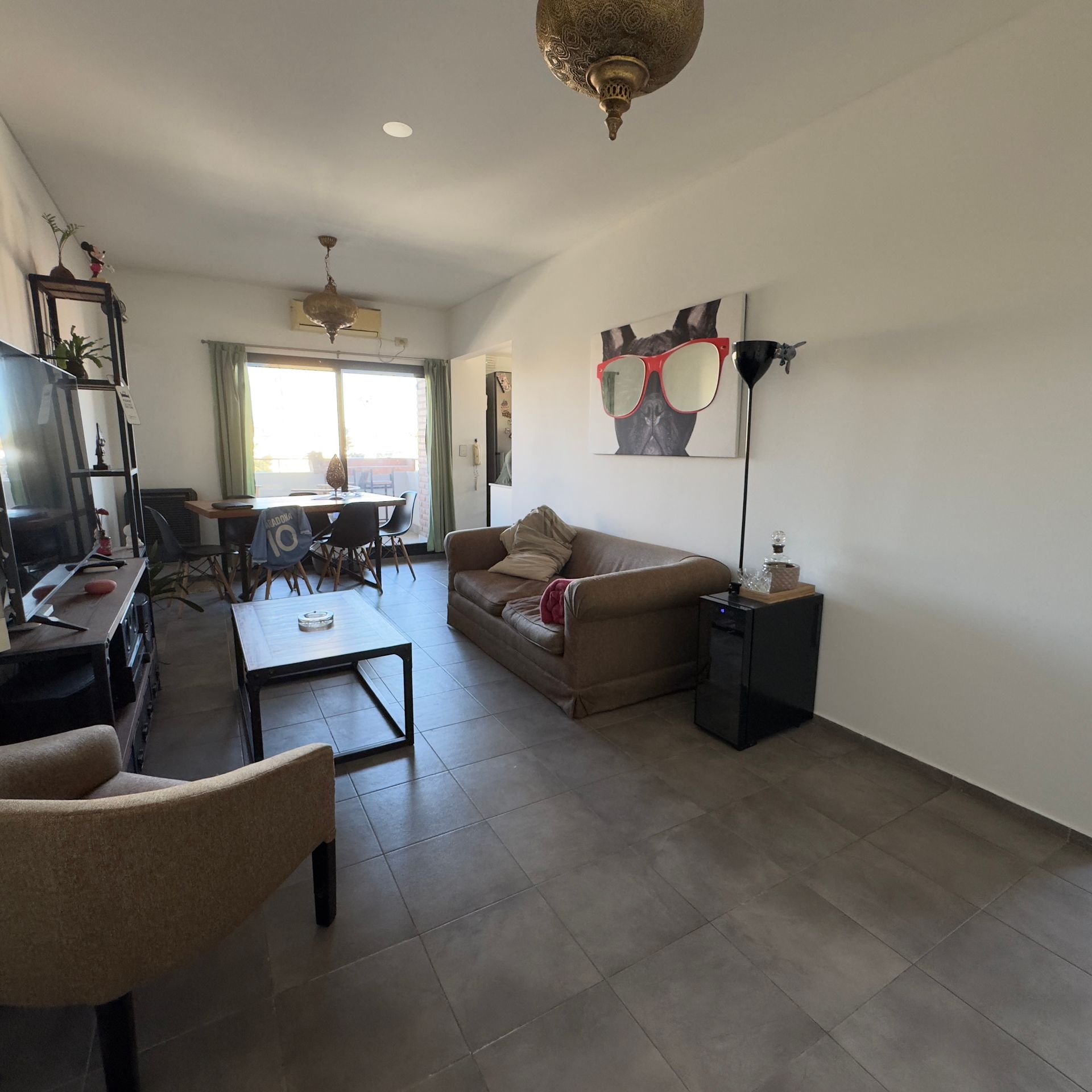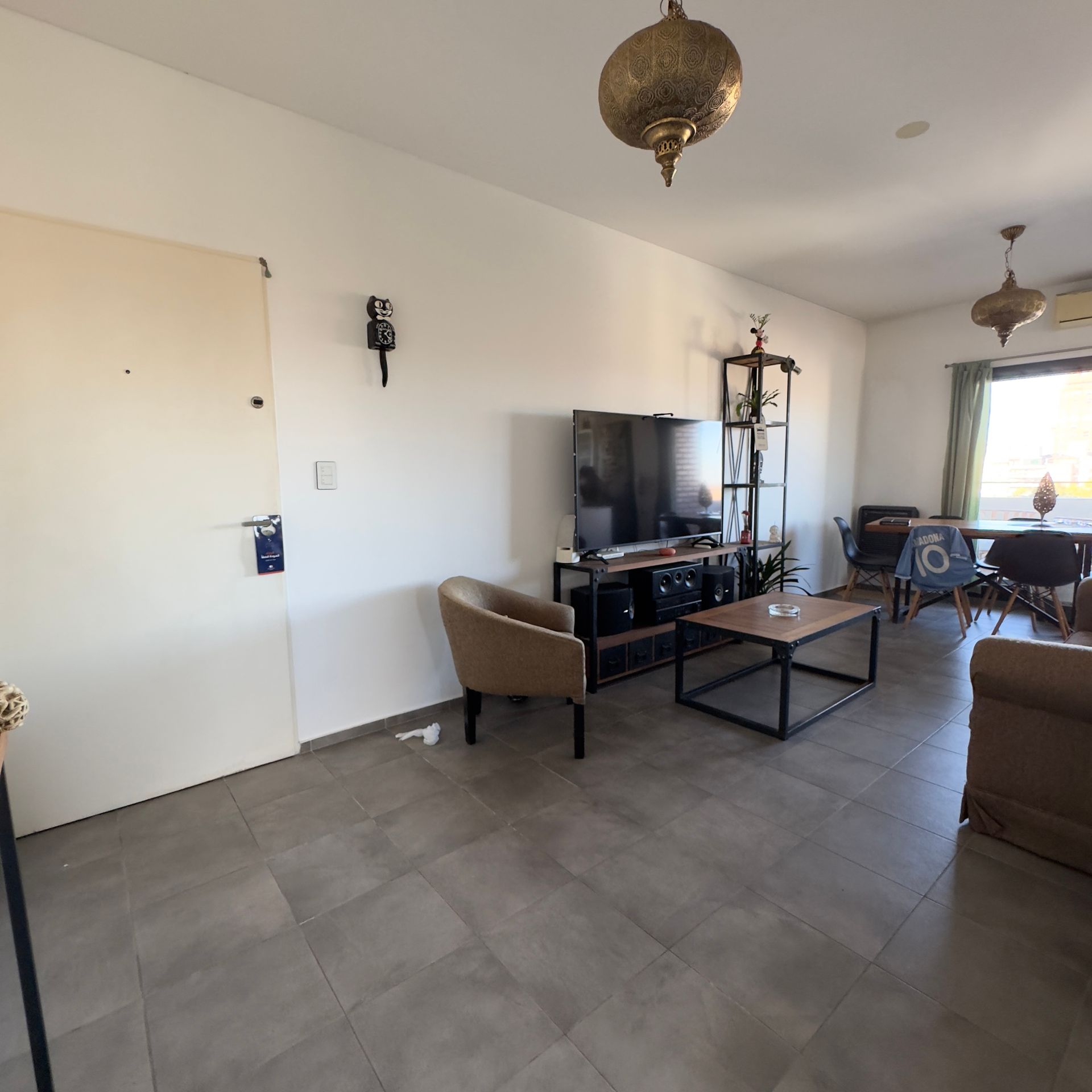 El amplio living‑comedor abre hacia un balcón con vista abierta, ofreciendo un espacio ideal para relajarse o disfrutar del aire libre. La cocina semi integrada cuenta con ventilación natural, mobiliario en perfecto estado y amplio espacio de almacenamiento, además de un área destinada a lavarropa y lavavajilla.