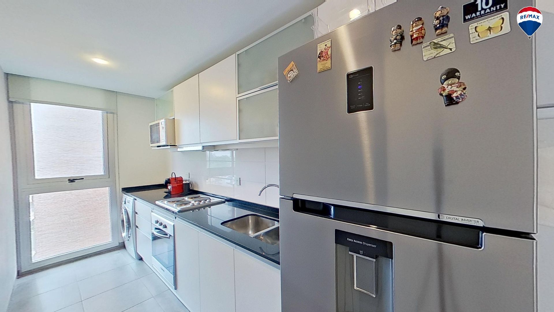 Situado en el piso 8 de la Torre Premium del complejo Vicente López Boulevard, este departamento de 3 ambientes combina luminosidad natural con una vista parcial al río. El amplio living comedor, con ventanales de piso a techo y acceso a balcón, se abre a una cocina independiente de diseño moderno, equipada con muebles de alta calidad, anafe y horno eléctrico, lavadero integrado y gran espacio de almacenamiento.