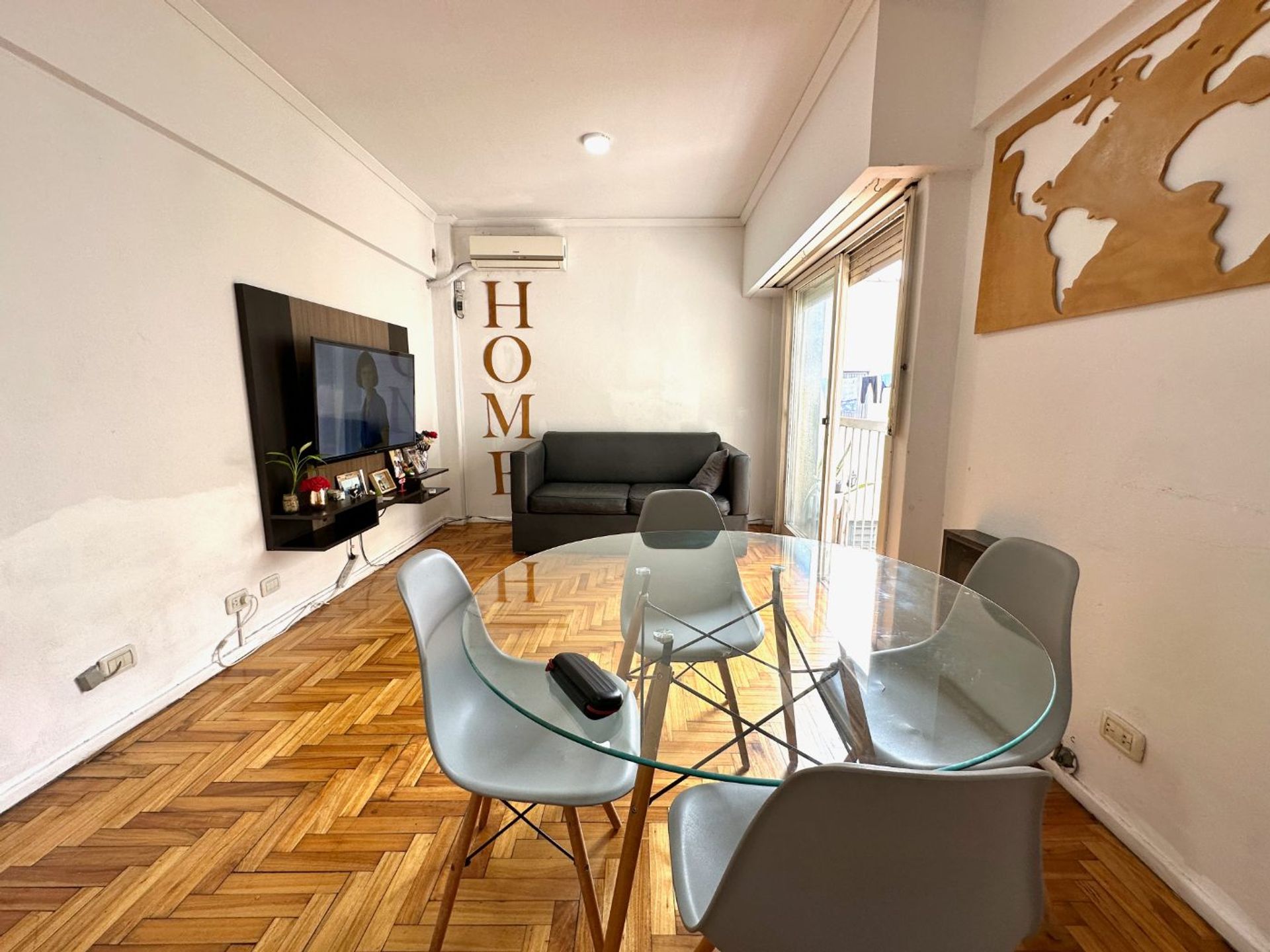 Departamento de cuatro ambientes ubicado en una zona de alta demanda, con una distribución que maximiza la luminosidad y el confort. El espacio cuenta con un amplio living comedor que se abre a un balcón francés, proporcionando aire fresco y una vista interior del edificio, ideal para momentos de relajación y entretenimiento.