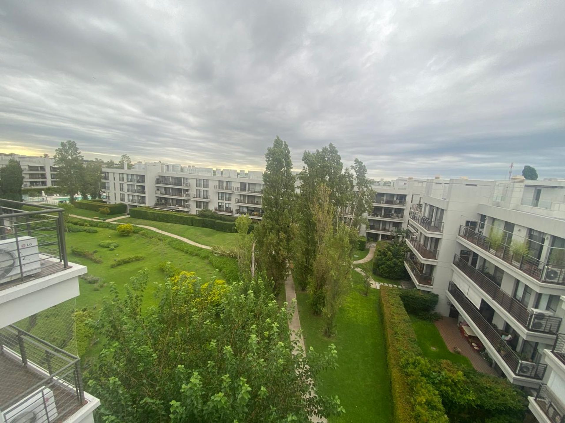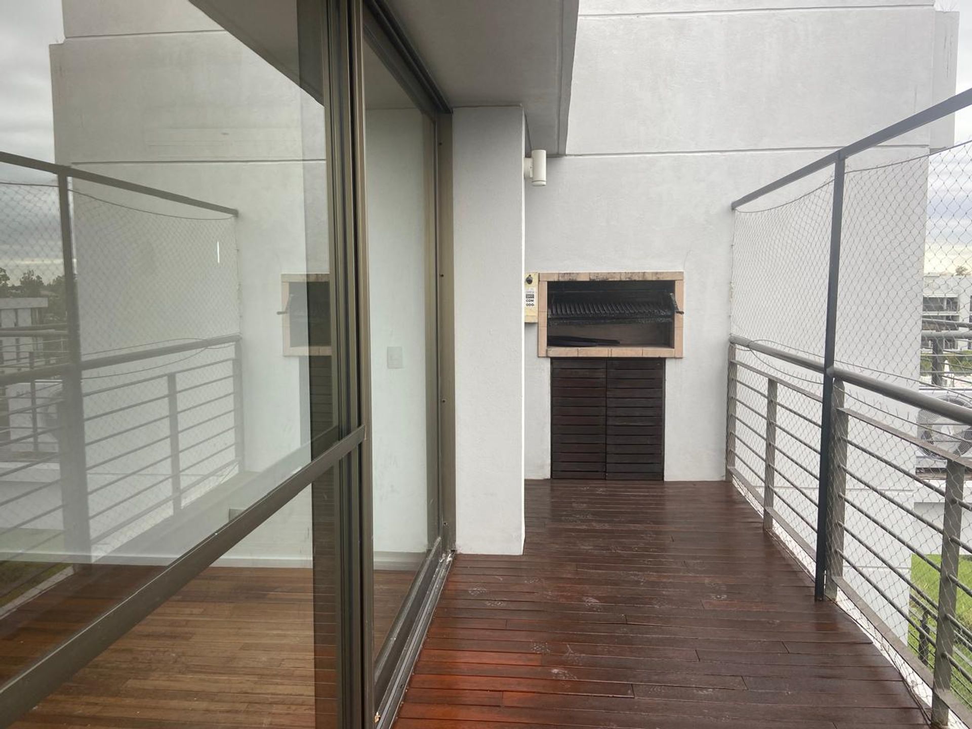 El espacio incluye un amplio dormitorio en suite con vestidor, un segundo dormitorio, y un baño completo compartimentado. Desde el balcón se disfruta de un entorno arbóreo, ideal para reuniones al aire libre con parrilla.